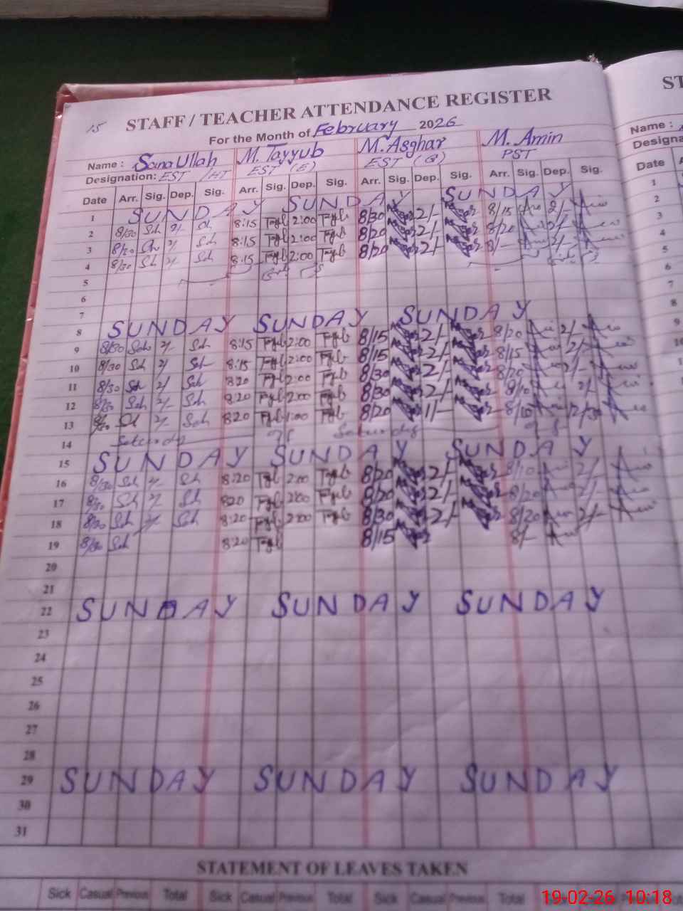 | Leave | Duty | Absent | Maternity | Medical | Ex- Pak |