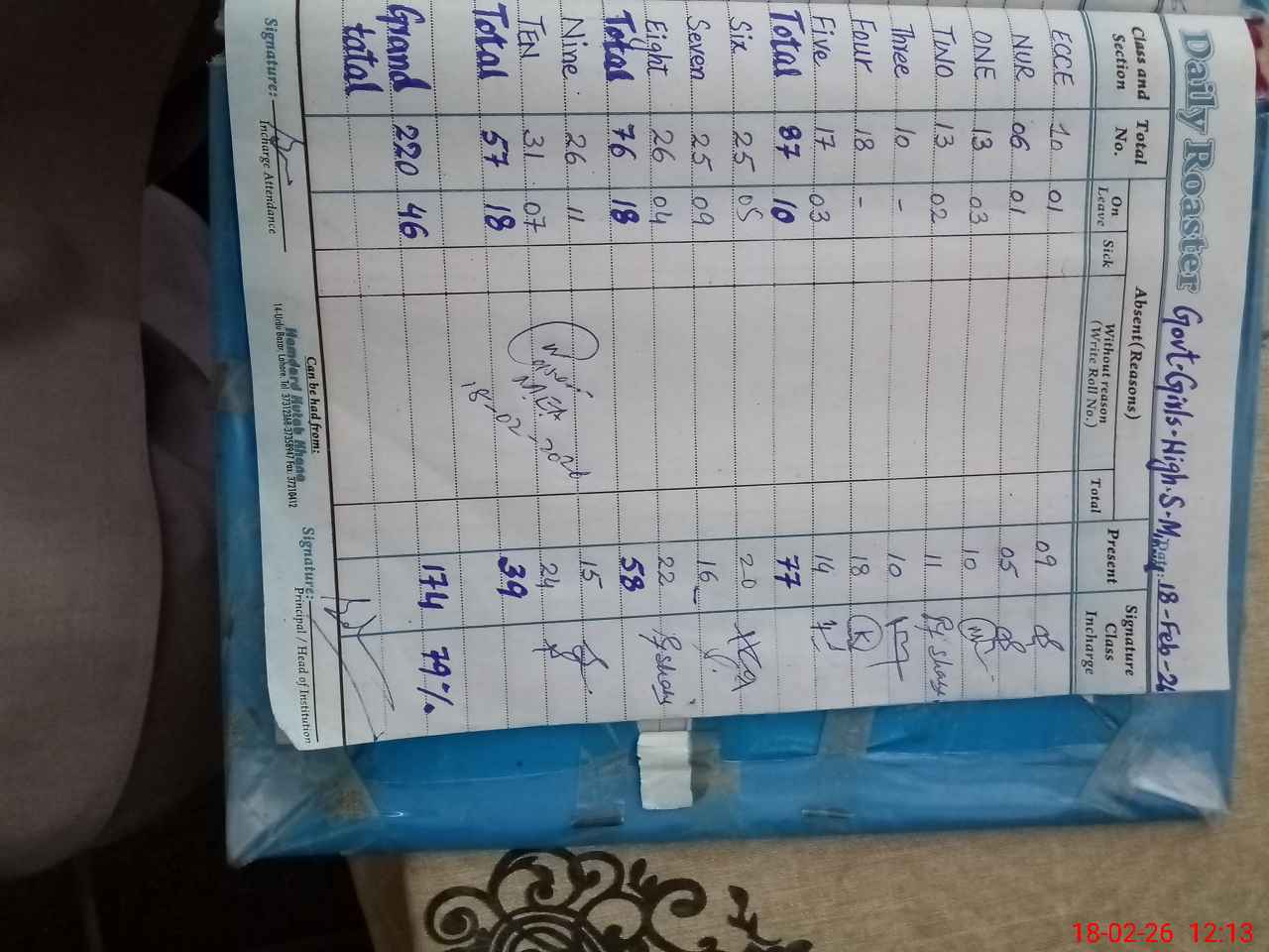 | Total Students Present | 0 | 9 | 10 | 11 | 10 | 18 | 14 | 20 | 16 | 22 | 15 | 24 | 174 | |||