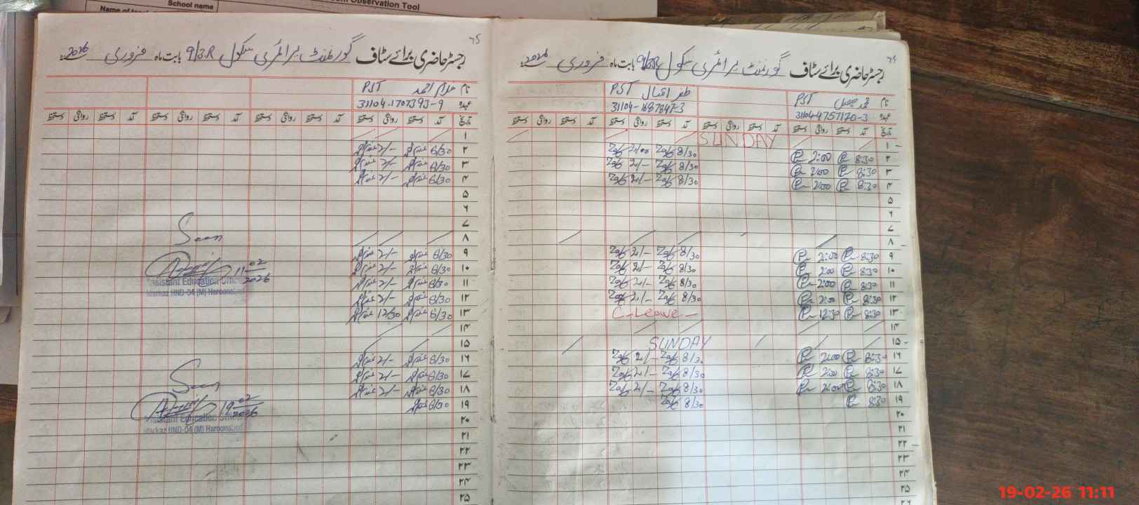 | CNIC | Full Name | Designation | R/C | Absence During Last Calender Month |