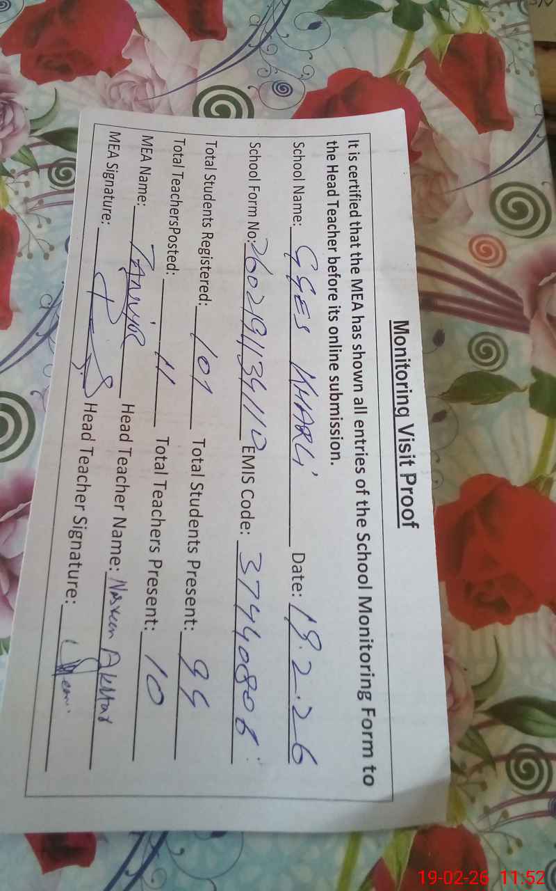 | Certified that this School was Inspected by the Undersigned MEA/DMO Today and the Information Stated Above is as Per Record. | |||||