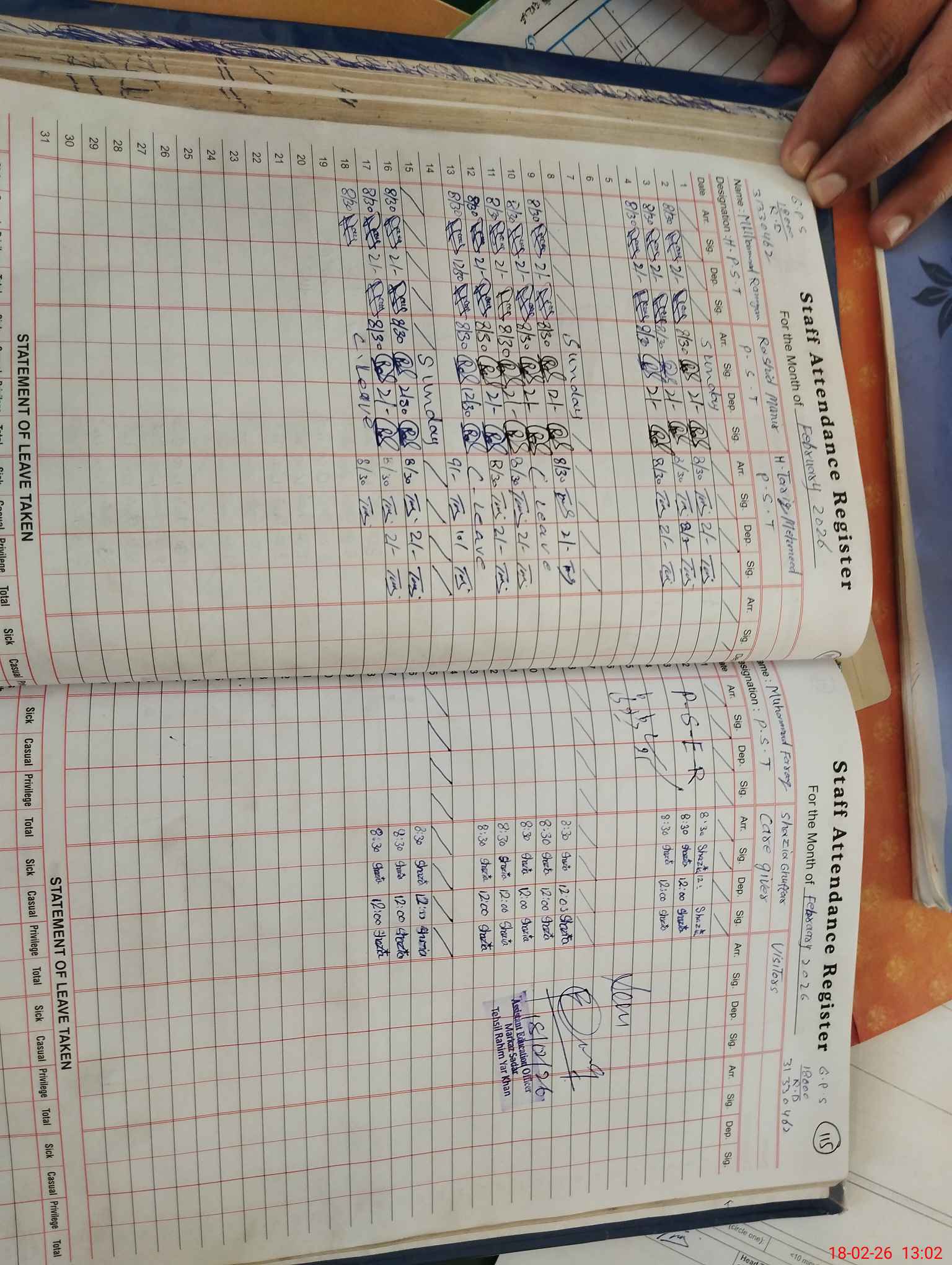 | Name: MU**** RA**** Designation: (School Headmaster's/Headmistress's) PST Phone/Cell Number: 03**** |