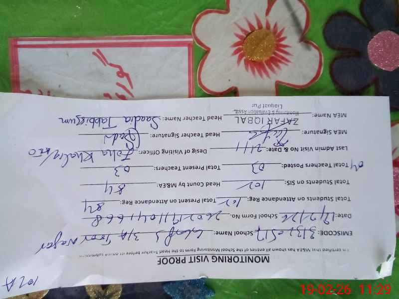 | Certified that this School was Inspected by the Undersigned MEA/DMO Today and the Information Stated Above is as Per Record. | |||||