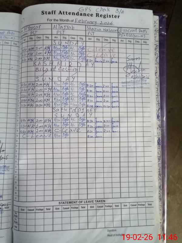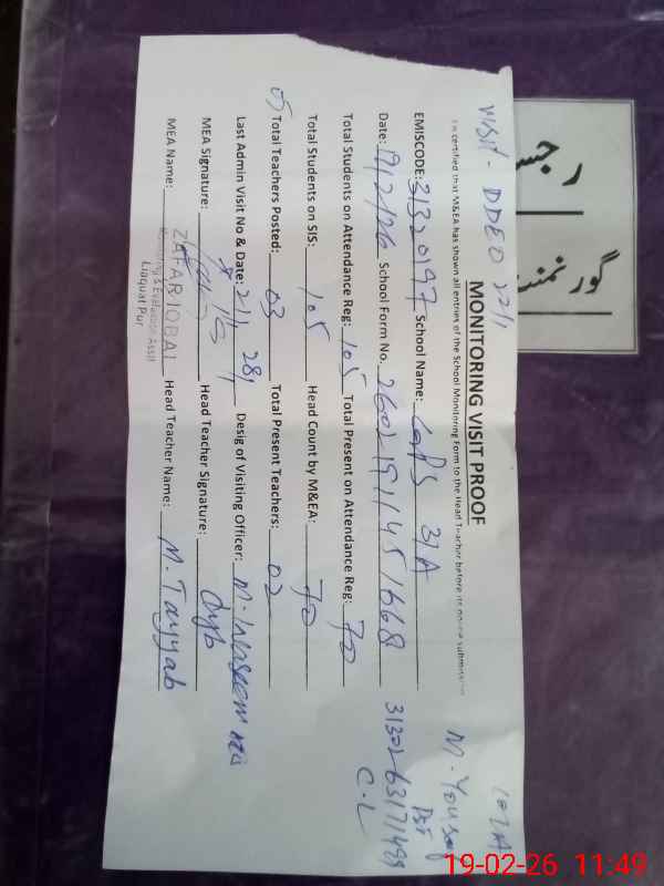 | EMIS Code: 31320197 | Name of School: GPS CHAK 3/A | |||