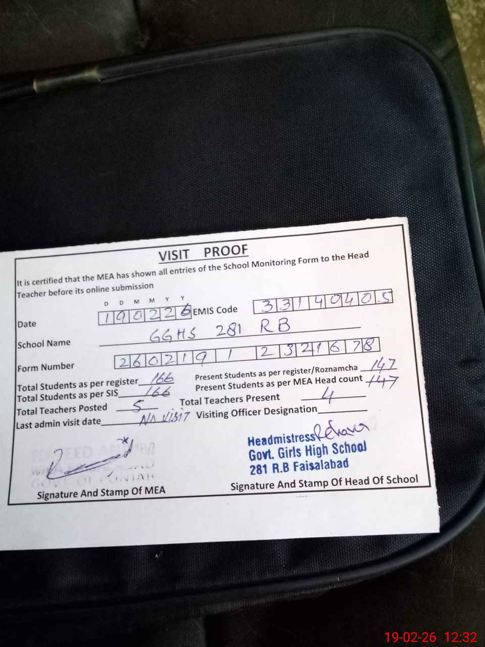 | EMIS Code: 33140405 | Name of School: GGHS CHAK 281 RB | |||