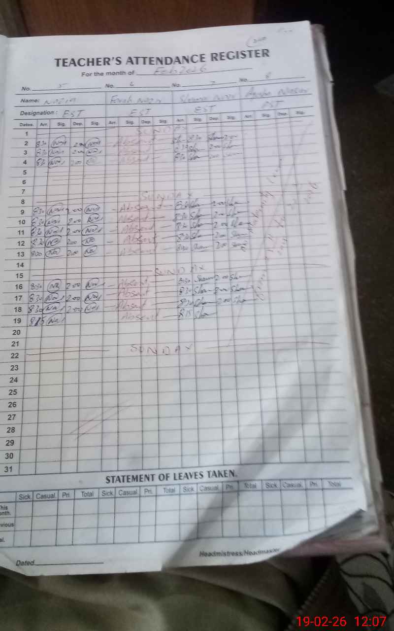| Name: IR**** AK**** Designation: (School Headmaster's/Headmistress's) H Miss (SST) Phone/Cell Number: 03**** |