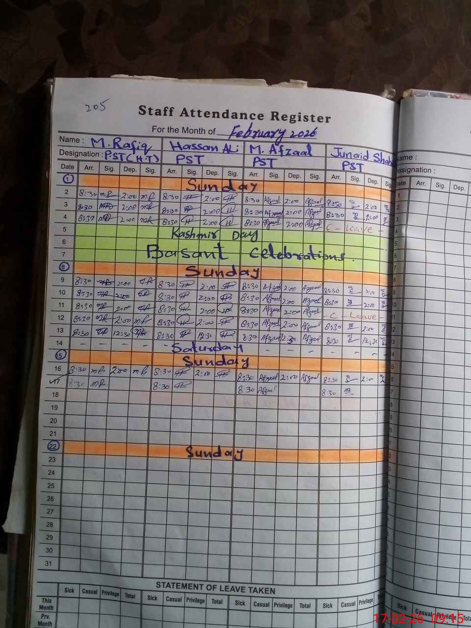 | Name: Mu**** Ra**** Designation: (School Headmaster's/Headmistress's) PST Phone/Cell Number: 03**** |