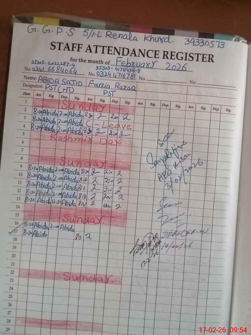 | Name: Ab**** Sa**** Designation: (School Headmaster's/Headmistress's) PST Phone/Cell Number: 03**** |