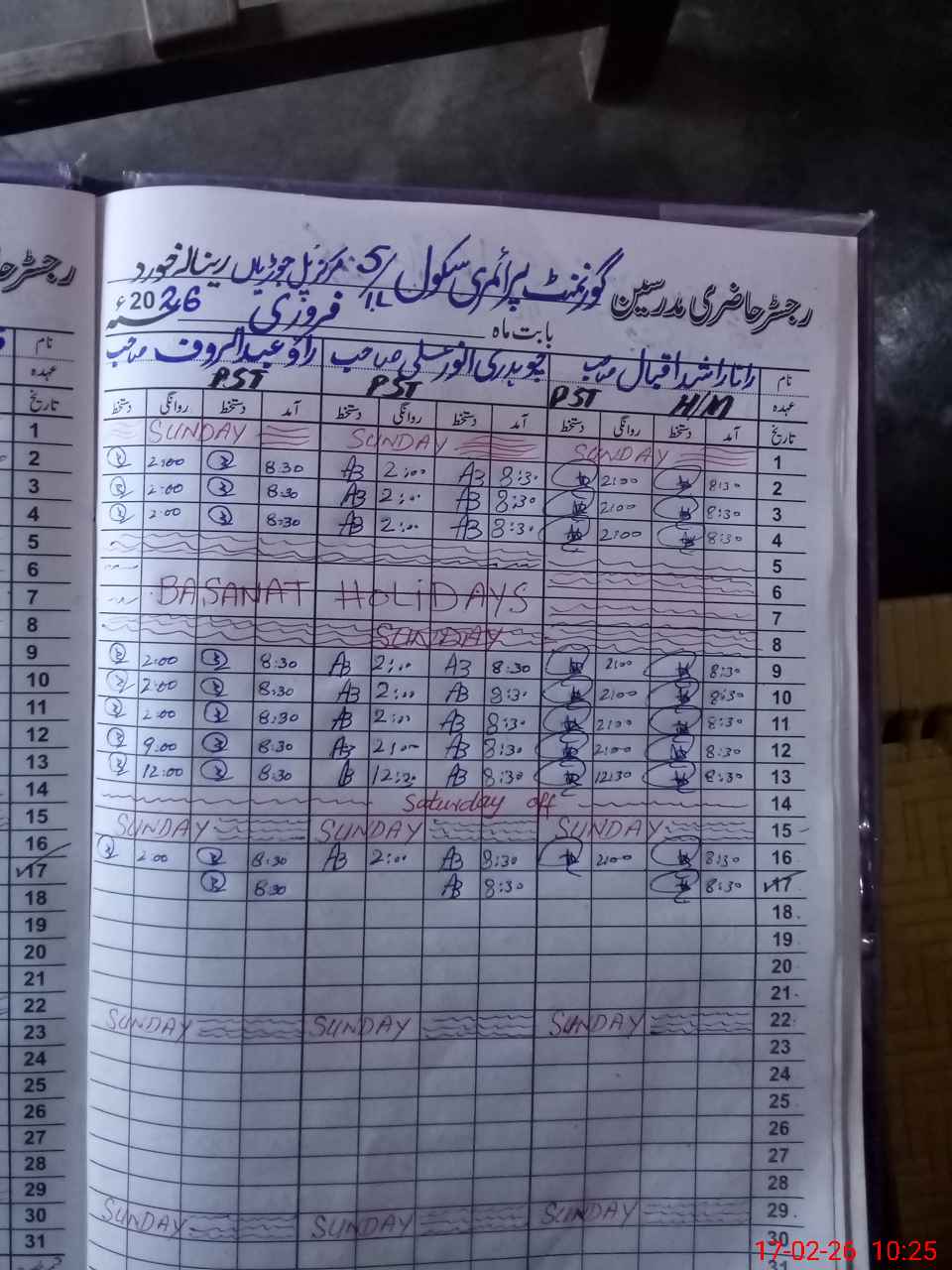 | CNIC | Full Name | Designation | R/C | Absence During Last Calender Month |