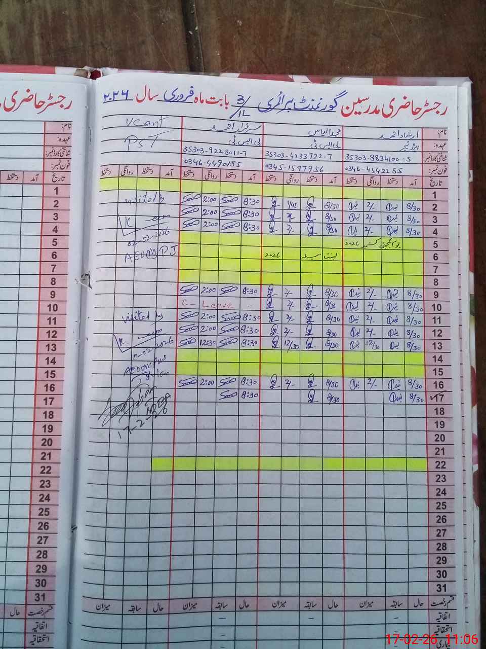 | Name: IR**** AH**** Designation: (School Headmaster's/Headmistress's) PTC/JV Phone/Cell Number: 03**** |