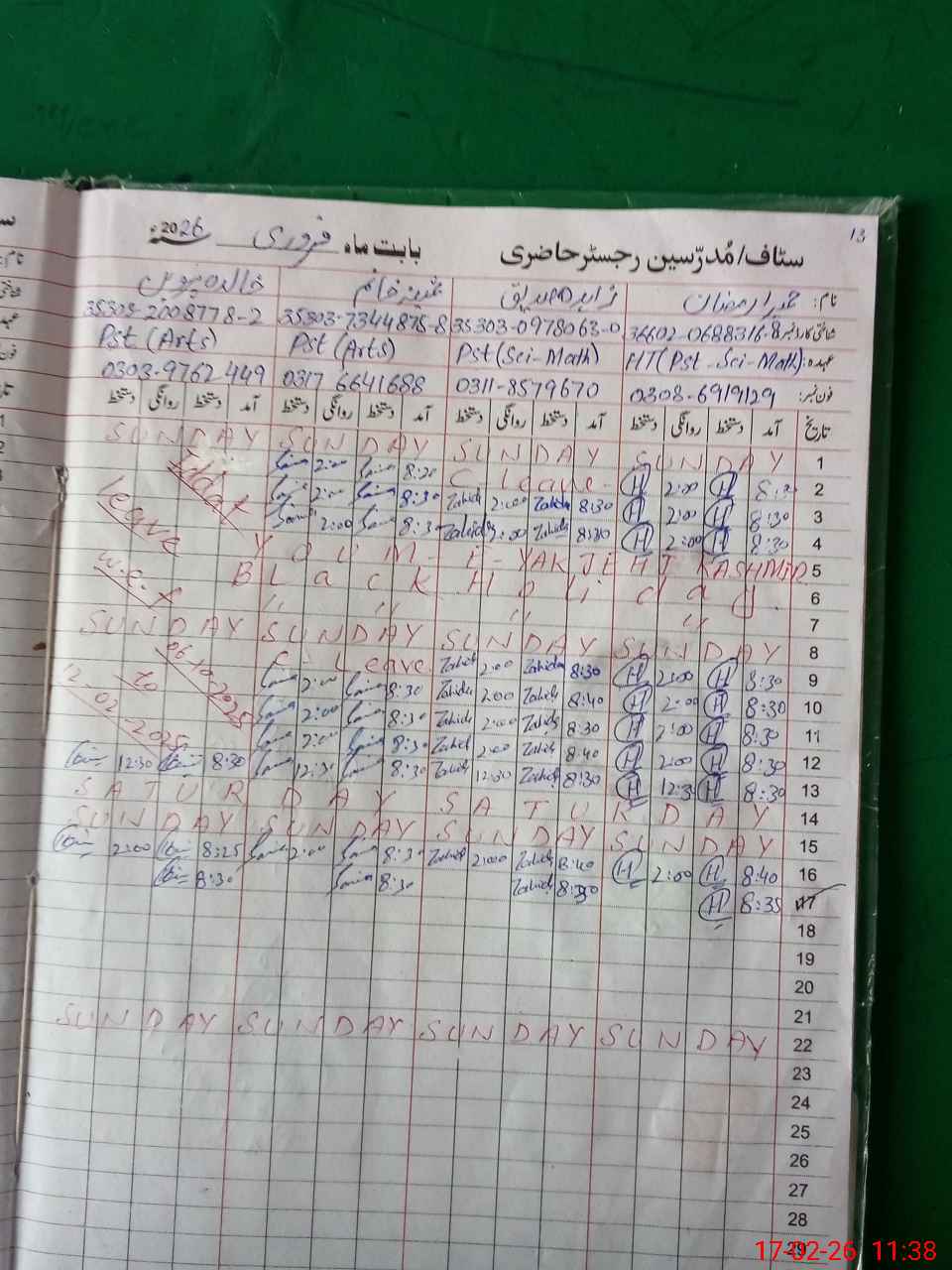 | CNIC | Full Name | Designation | R/C | Absence During Last Calender Month |