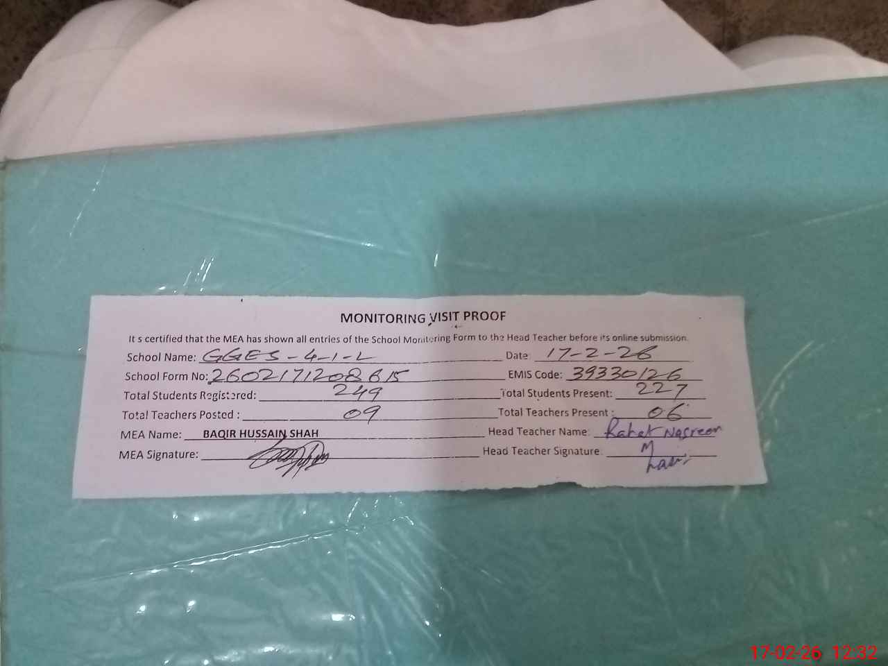 | EMIS Code: 39330126 | Name of School: GGES CHAK NO. 4/1-L | |||