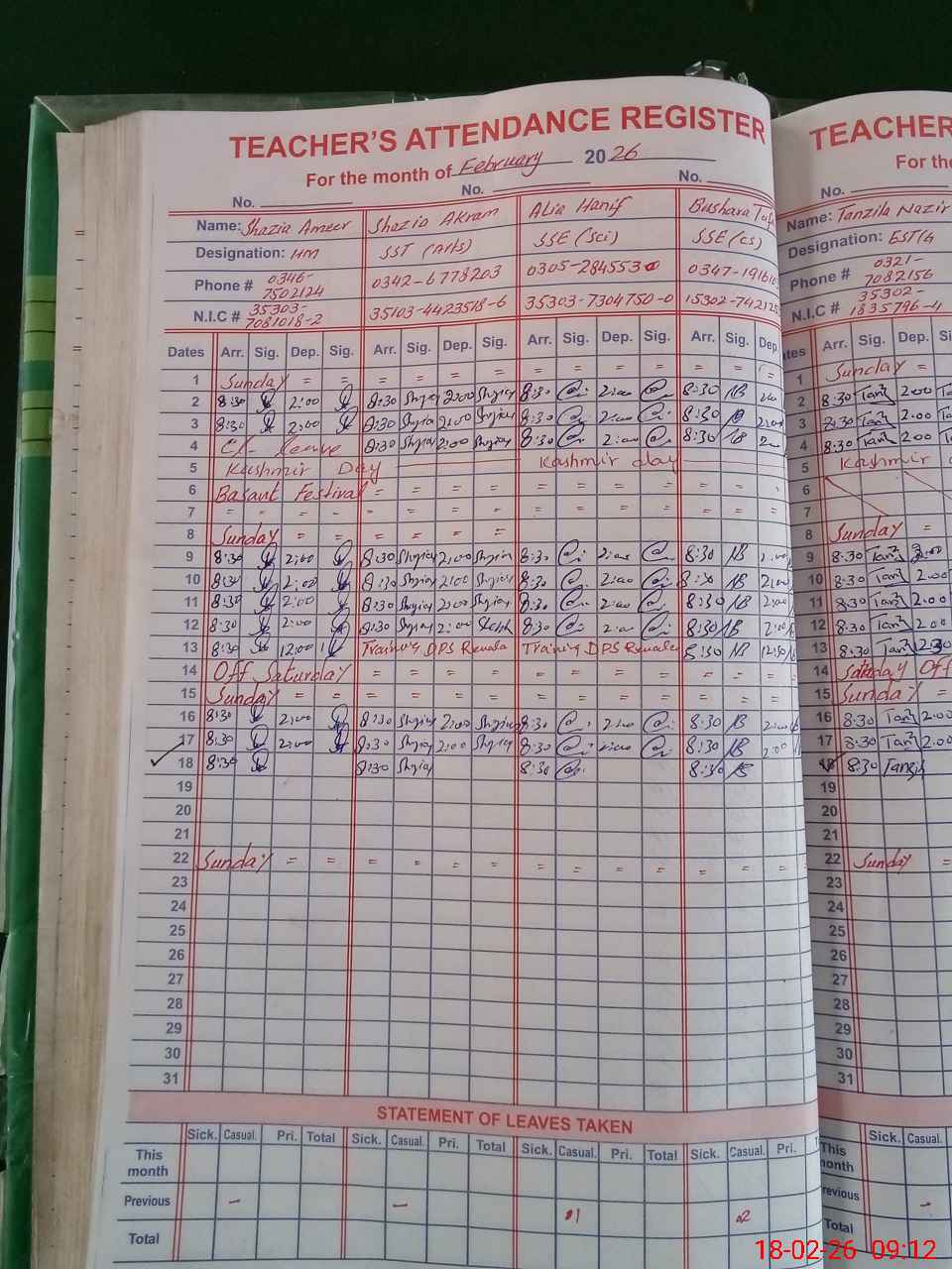| Name: AL**** HA**** Designation: (School Headmaster's/Headmistress's) S.S.E.(SC) Phone/Cell Number: 03**** |