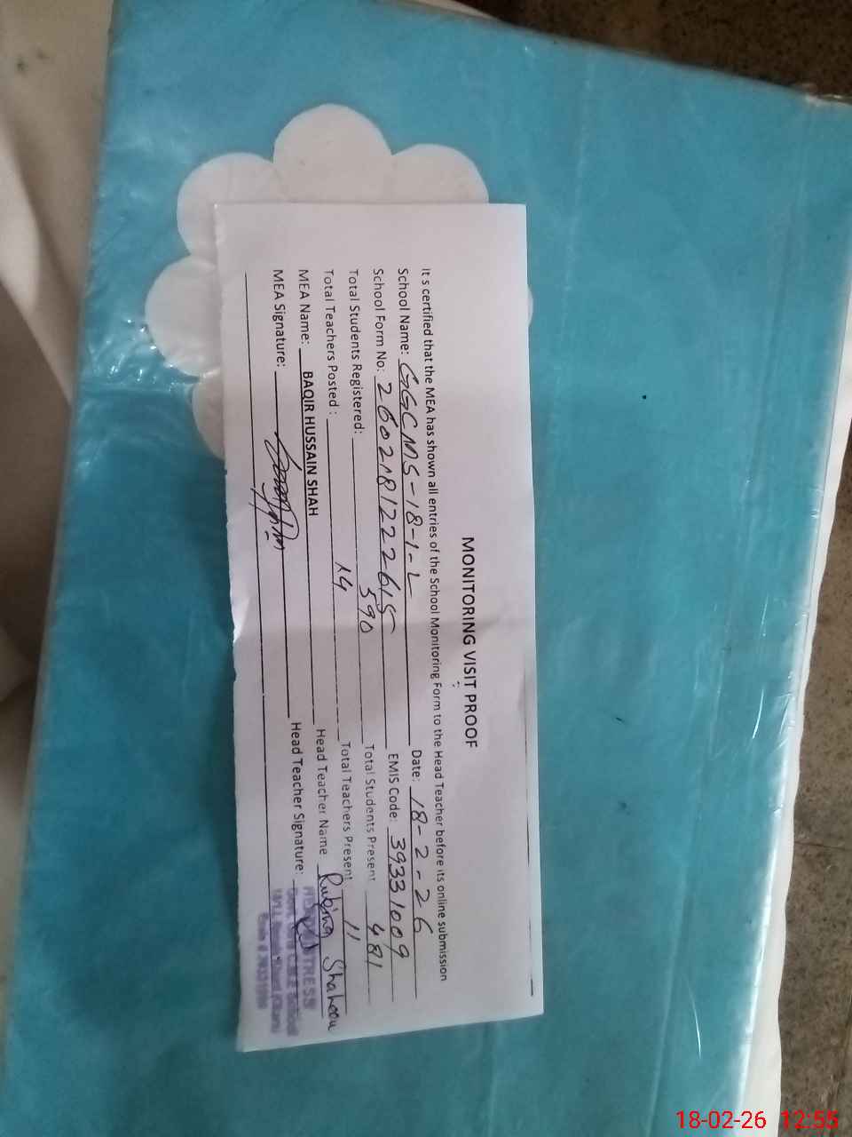 | Certified that this School was Inspected by the Undersigned MEA/DMO Today and the Information Stated Above is as Per Record. | |||||