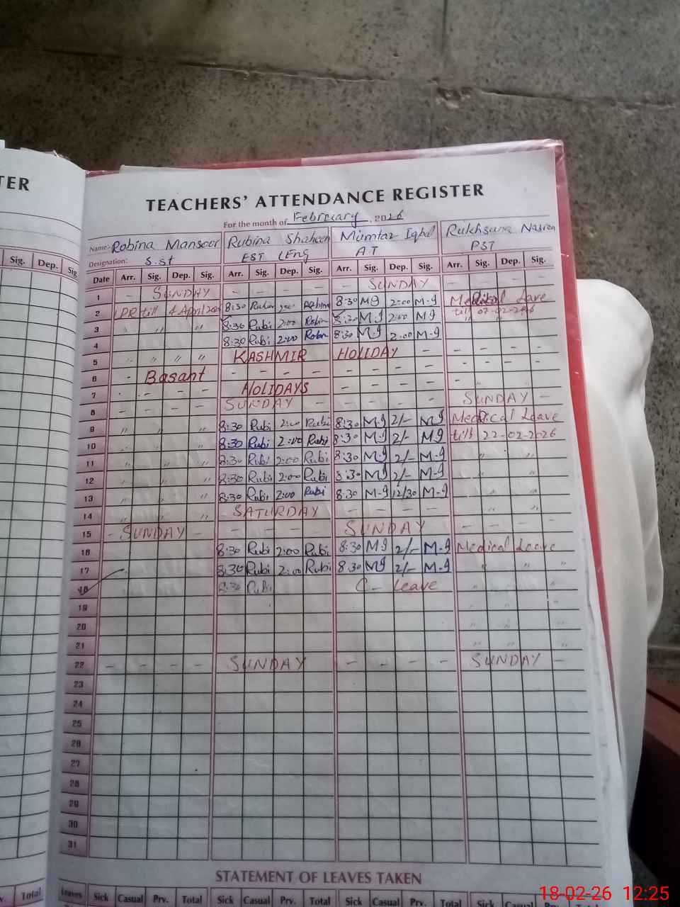 | 36**** | An**** Kh**** | PST Science/Maths | Regular | 12 | 0 | 0 | 12 | 0 | 0 | 0 | 0 | 0 | Maternity |
