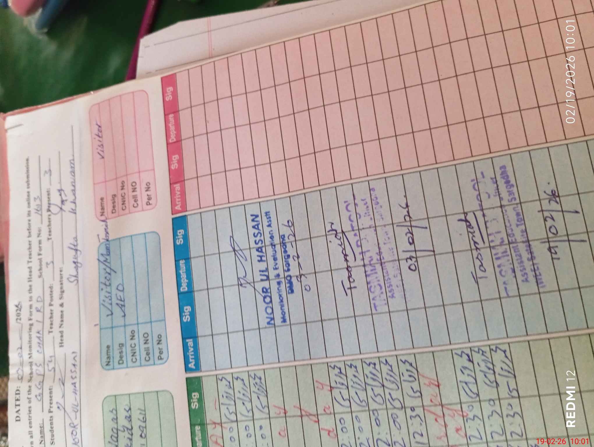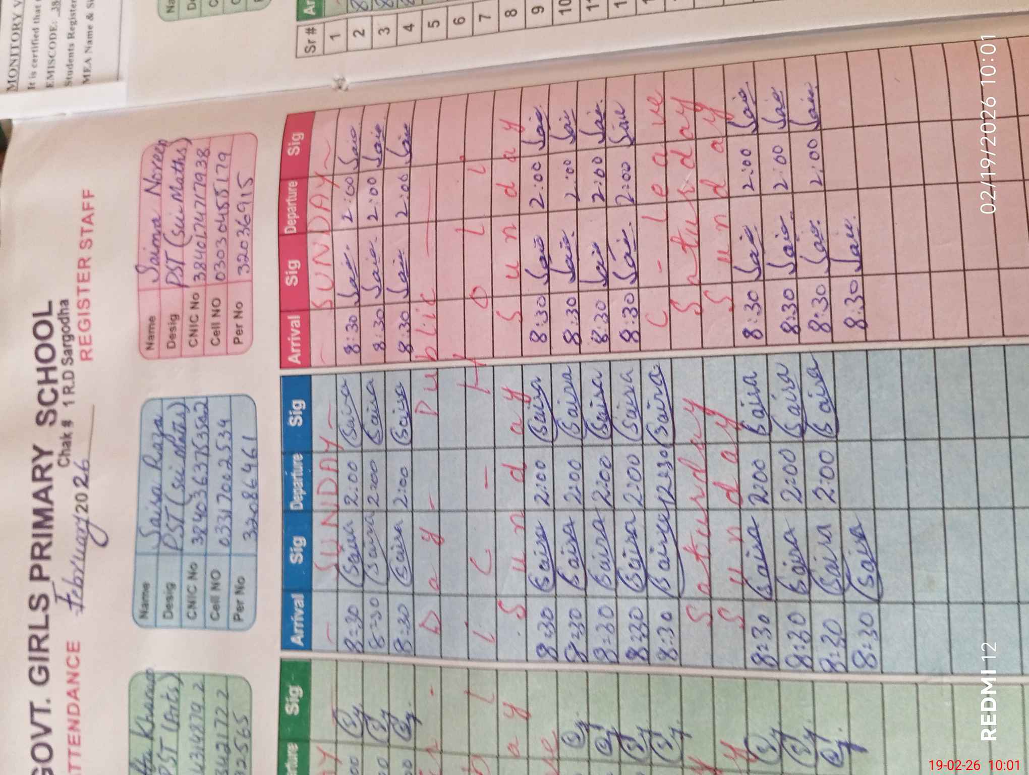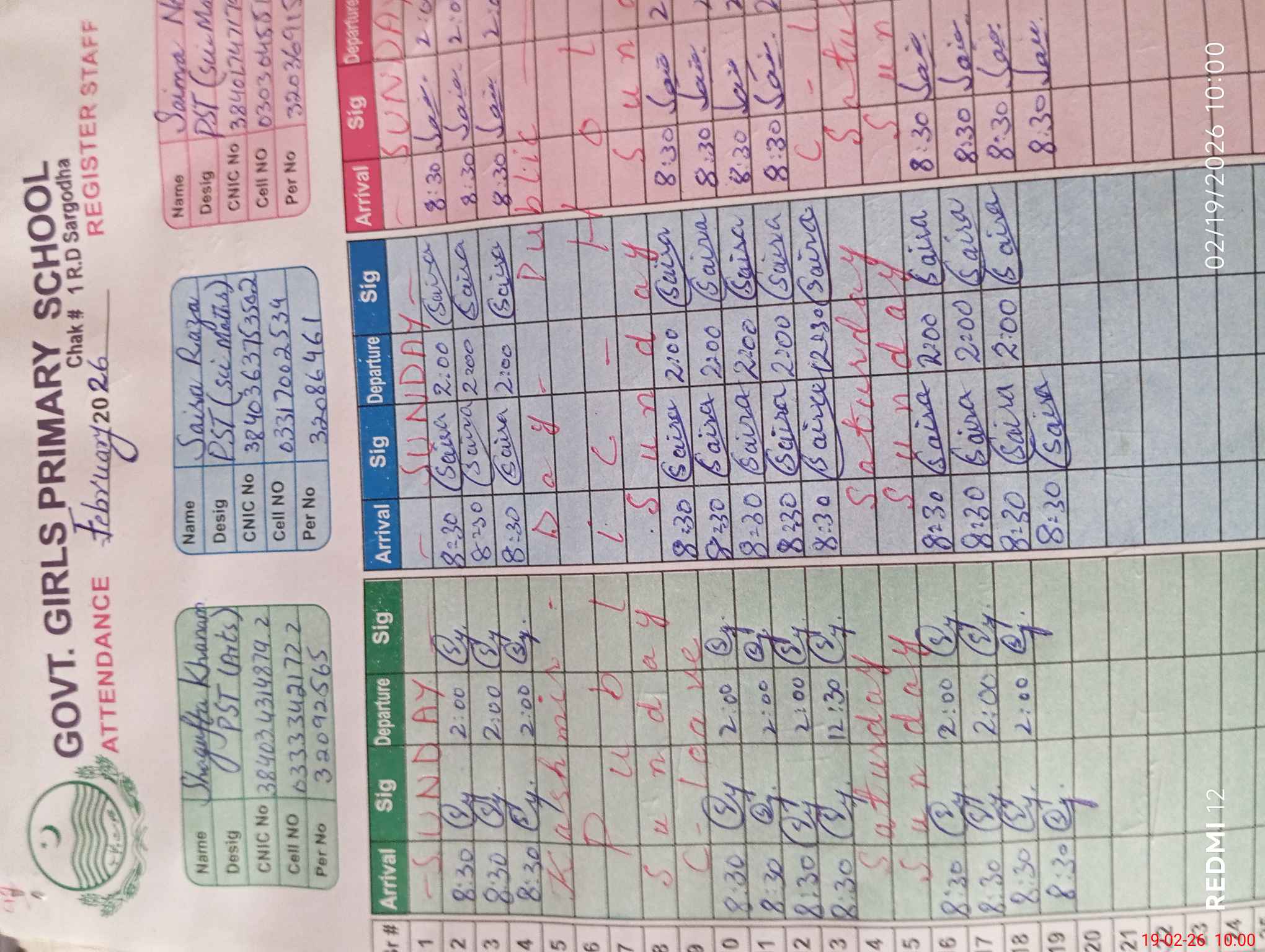 | Name: SH**** Kh**** Designation: (School Headmaster's/Headmistress's) PST Phone/Cell Number: 03**** |