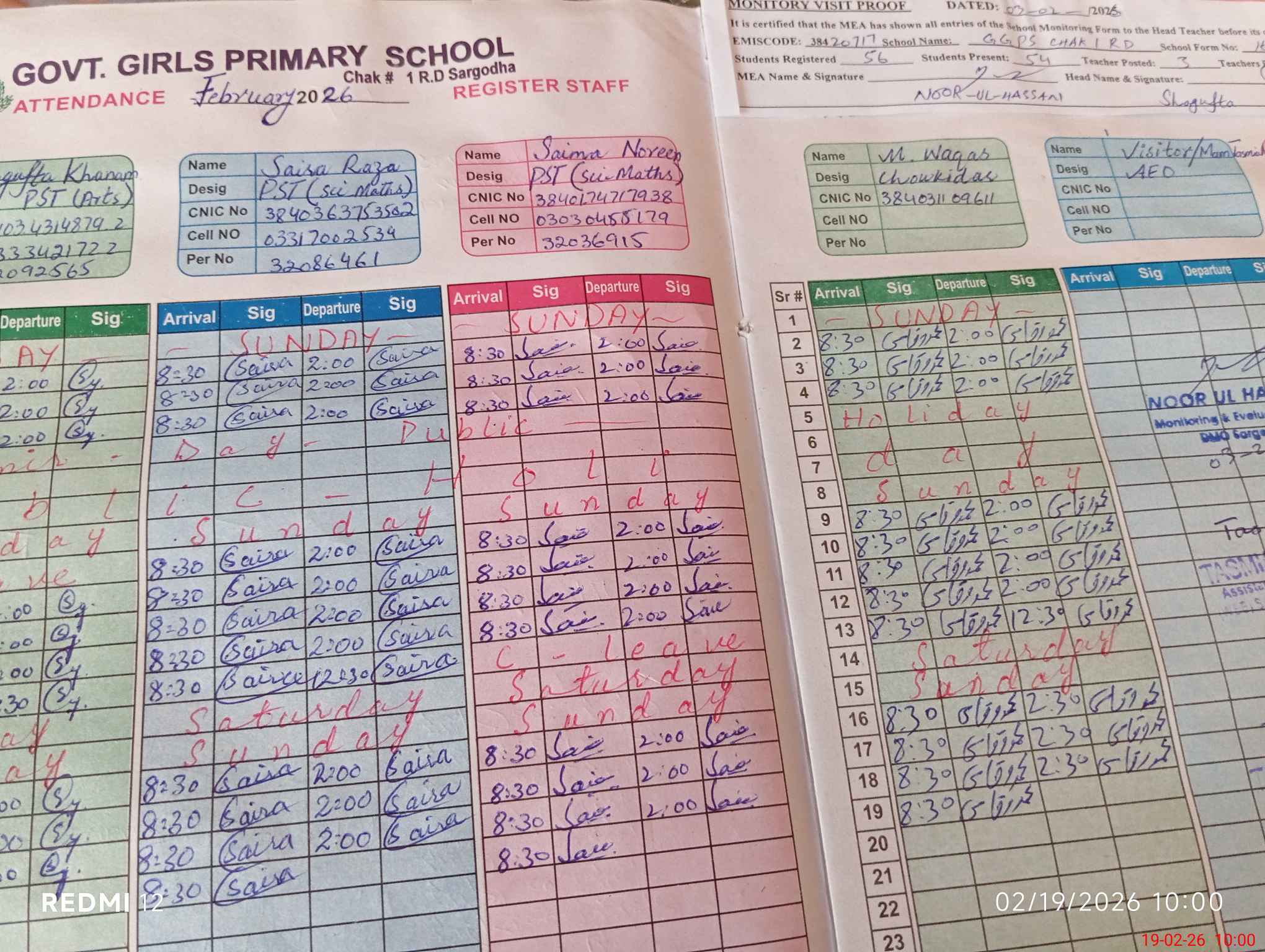 | Attendance Register | Head Teacher | MEA with School | Visit Proof |