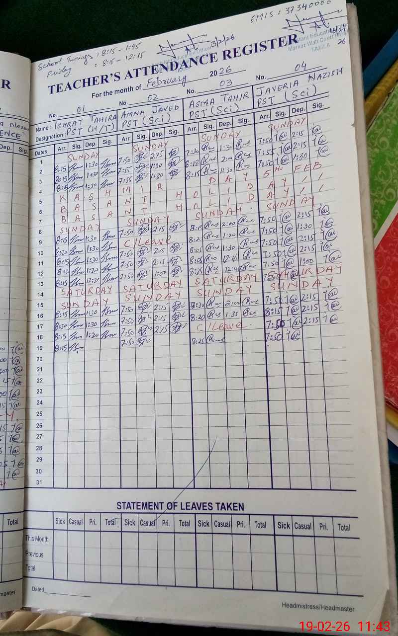 | District: RAWALPINDI | Tehsil: TAXILA | Markaz: TAXILA - FEMALE | Level: Primary | |
