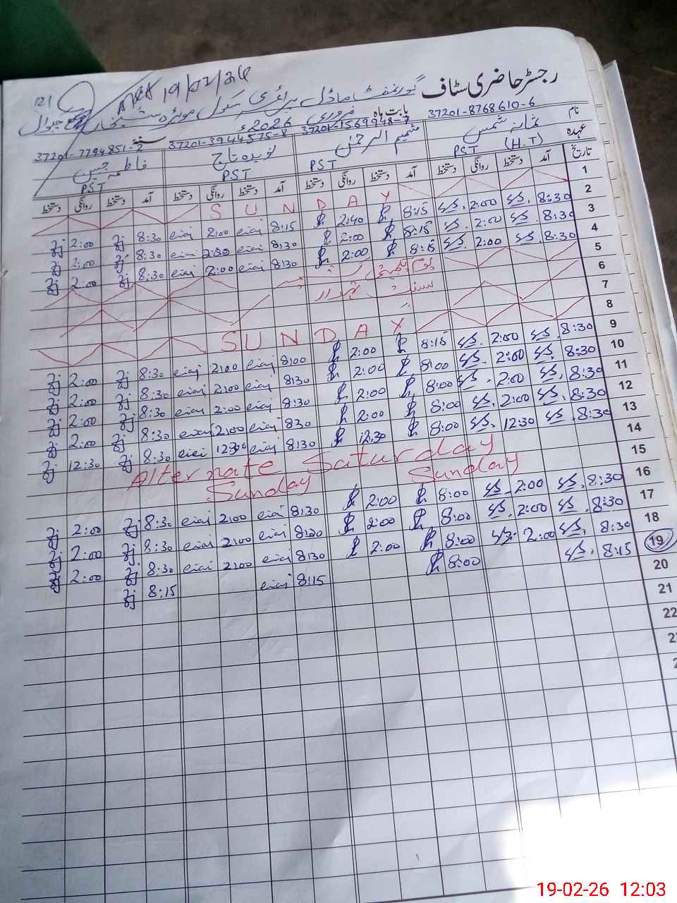 | CNIC | Full Name | Designation | R/C | Absence During Last Calender Month |