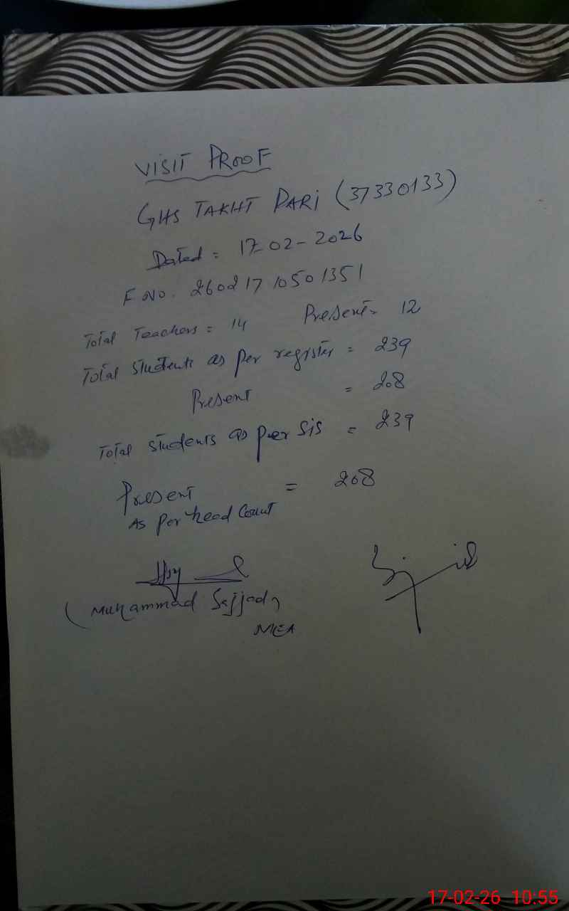 | EMIS Code: 37330133 | Name of School: GHS TAKHT PARI | |||