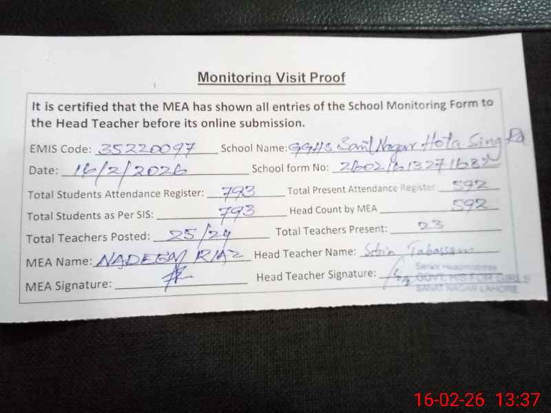 | EMIS Code: 35220097 | Name of School: GGHS SANT NAGAR HOTA SINGH ROAD | |||