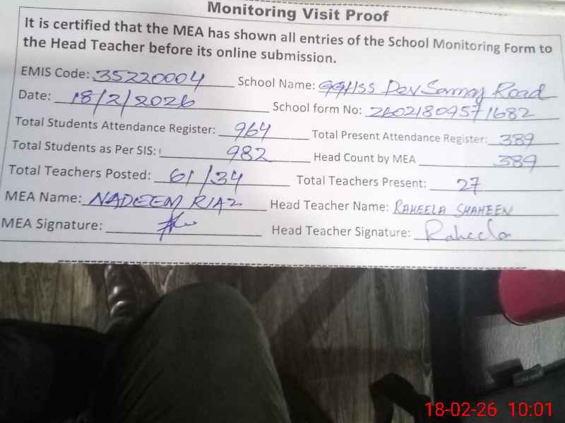 | Certified that this School was Inspected by the Undersigned MEA/DMO Today and the Information Stated Above is as Per Record. | |||||