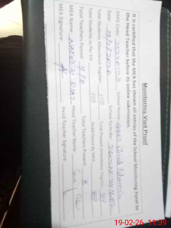 | Certified that this School was Inspected by the Undersigned MEA/DMO Today and the Information Stated Above is as Per Record. | |||||