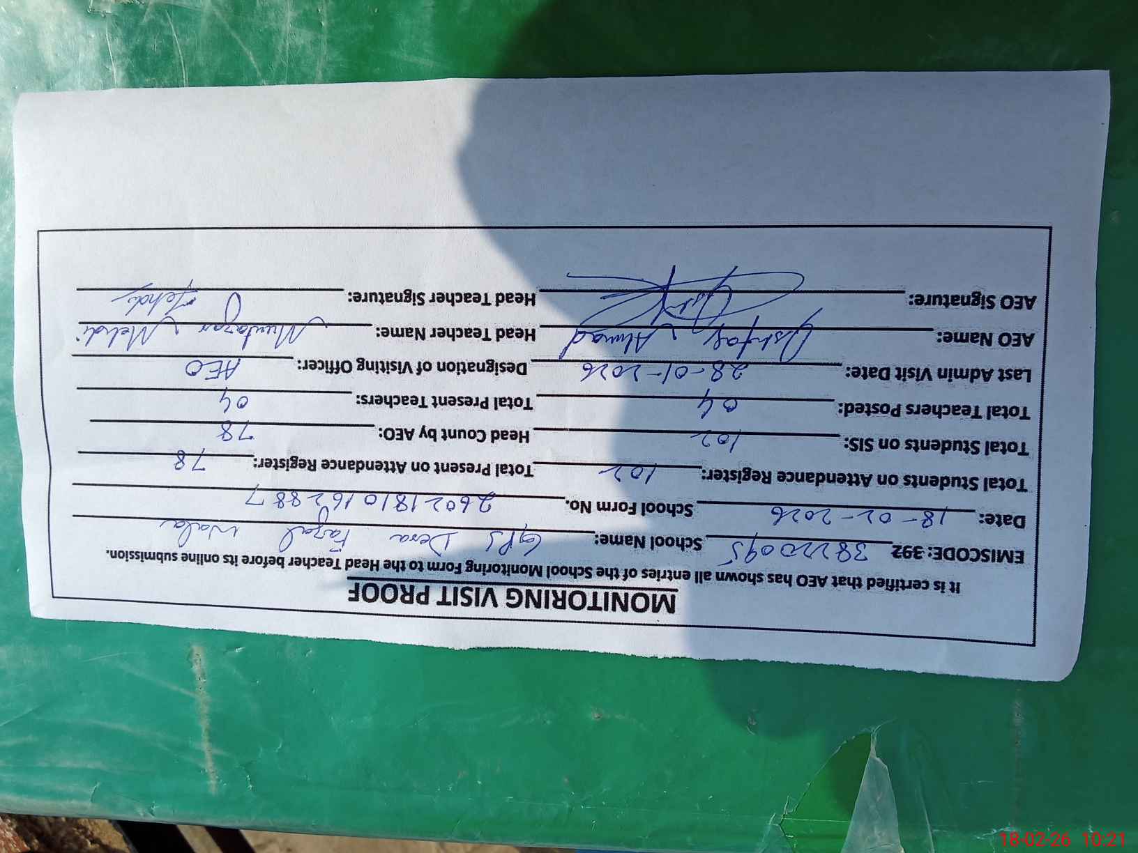 | Certified that this School was Inspected by the Undersigned MEA/DMO Today and the Information Stated Above is as Per Record. | |||||