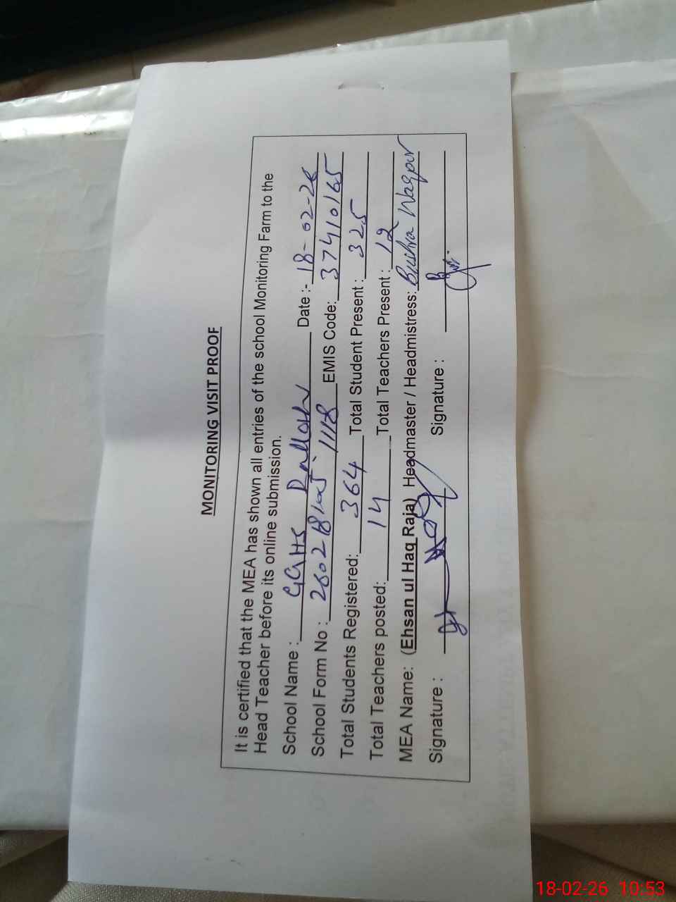 | Certified that this School was Inspected by the Undersigned MEA/DMO Today and the Information Stated Above is as Per Record. | |||||