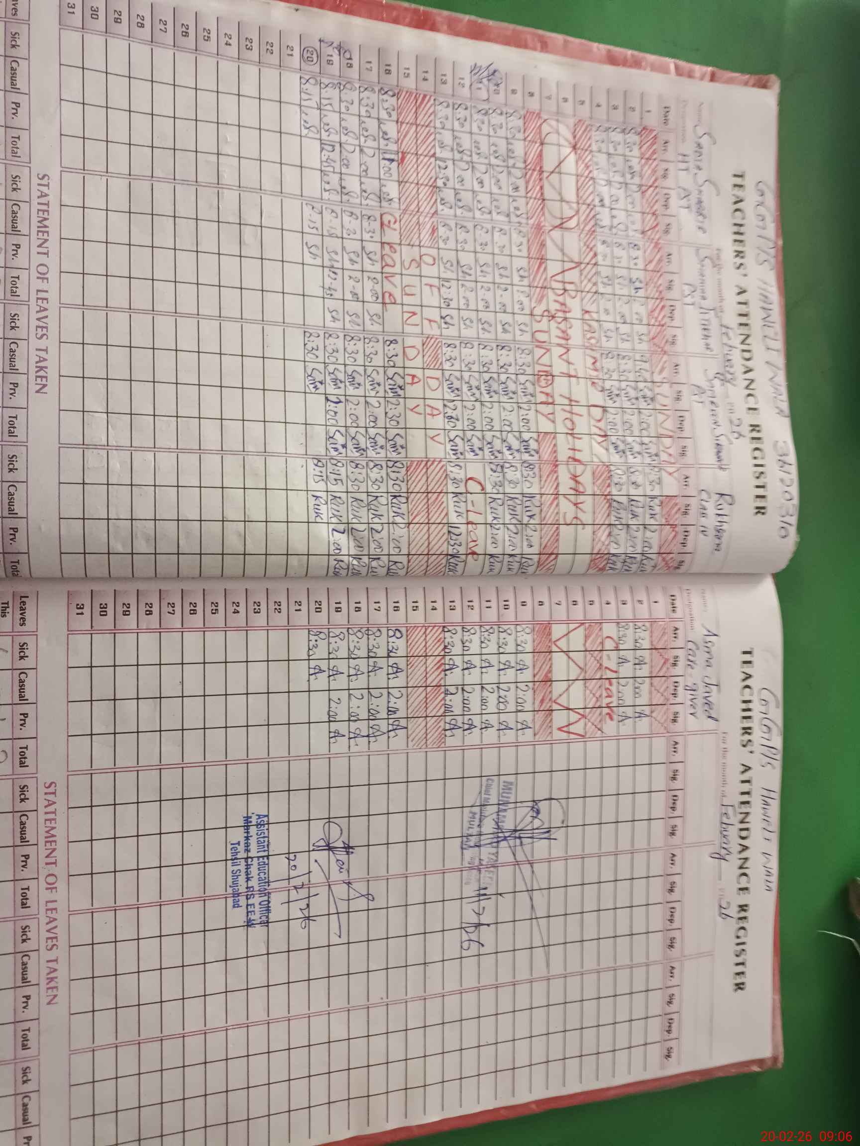 | Attendance Register | Head Teacher | MEA with School | Visit Proof |