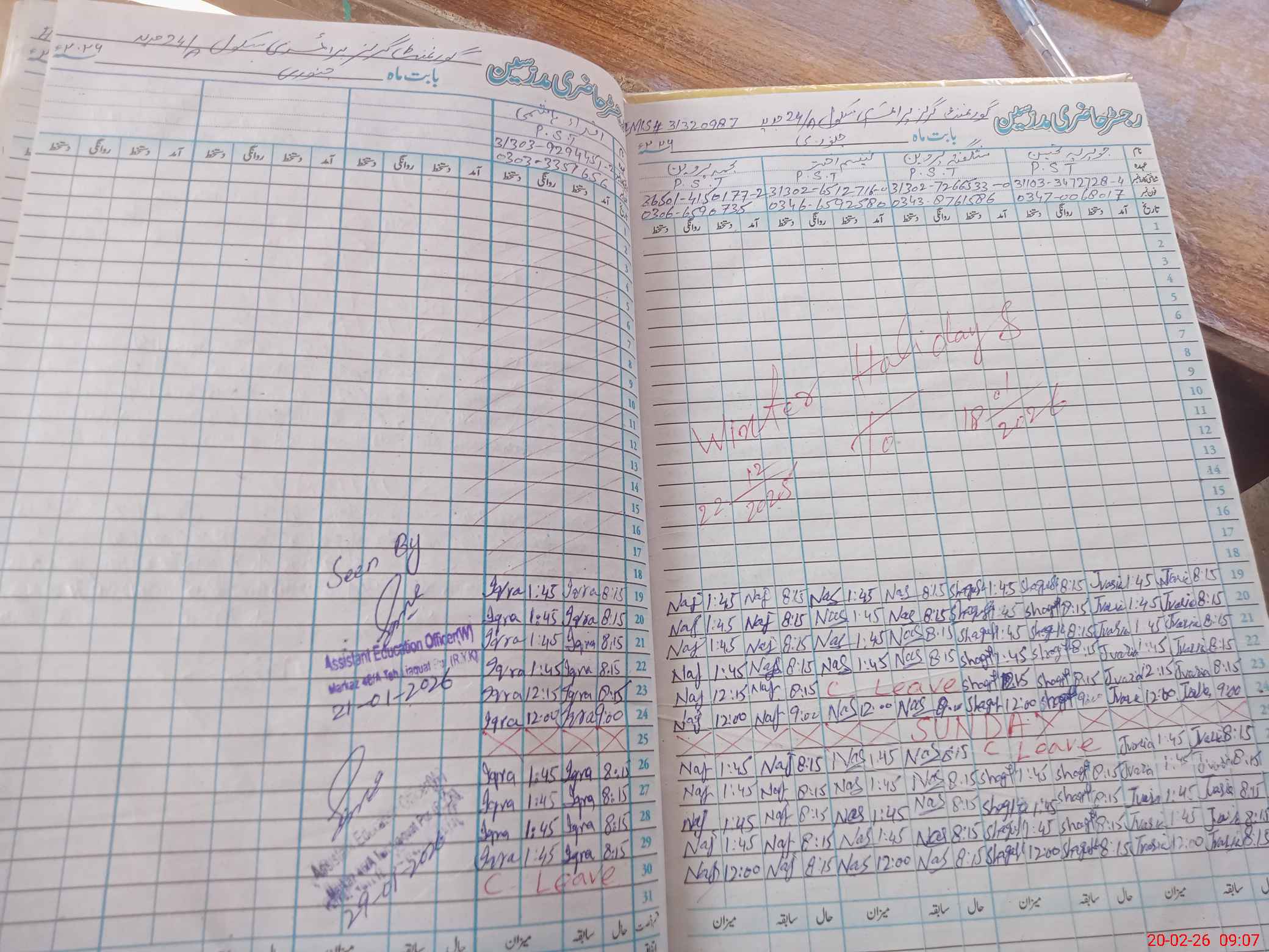 | CNIC | Full Name | Designation | R/C | Absence During Last Calender Month |