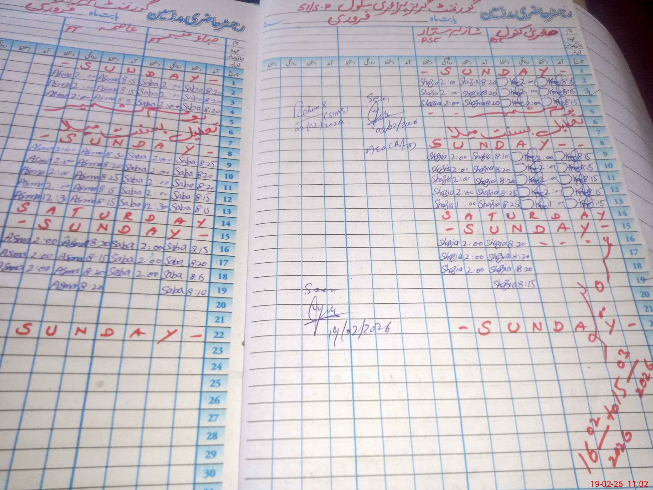 | School Visited by School Health & Nutrition Supervisor (No. of Visits) | 1 | Name1: | Rehana | Name2: | |