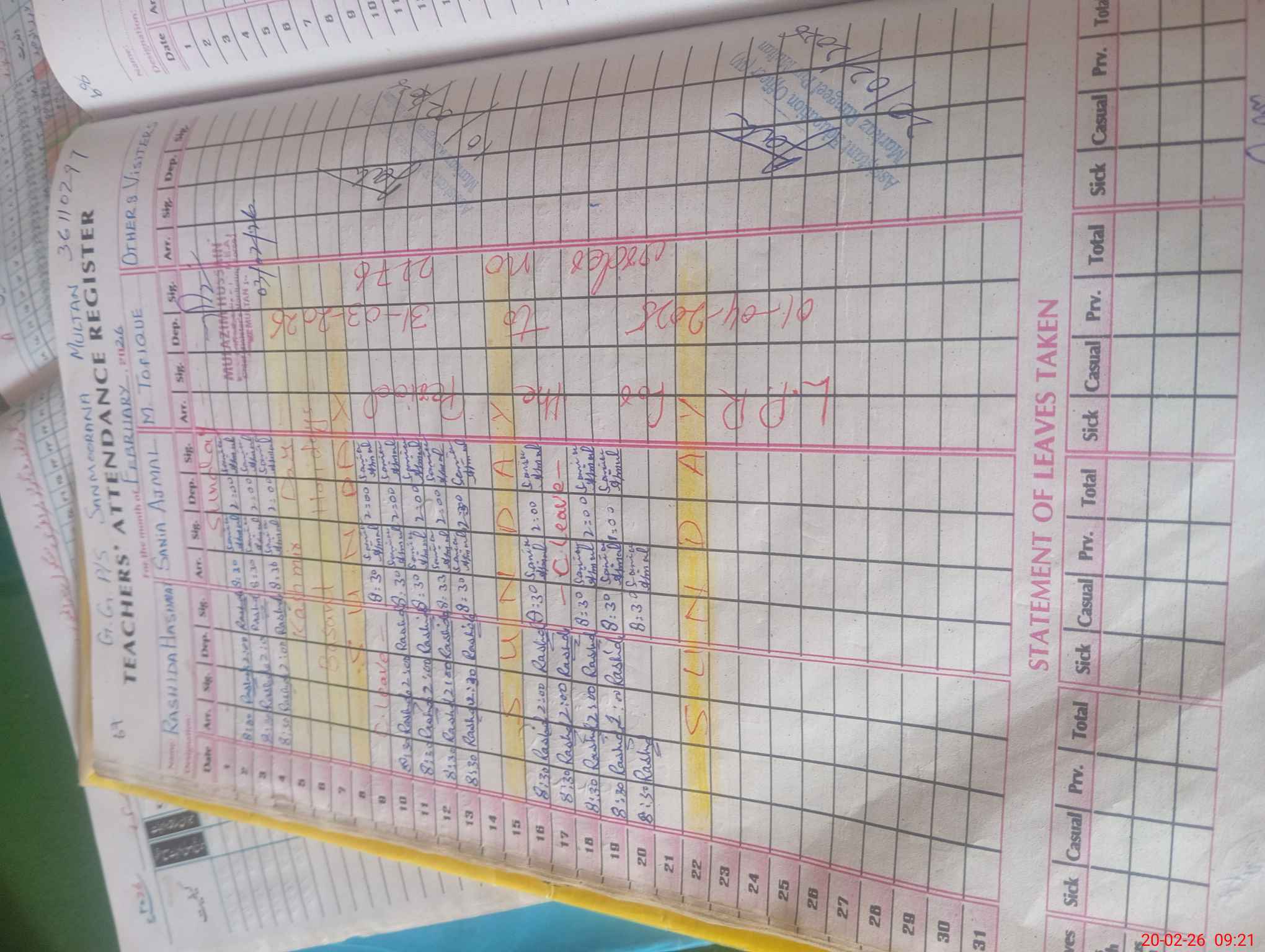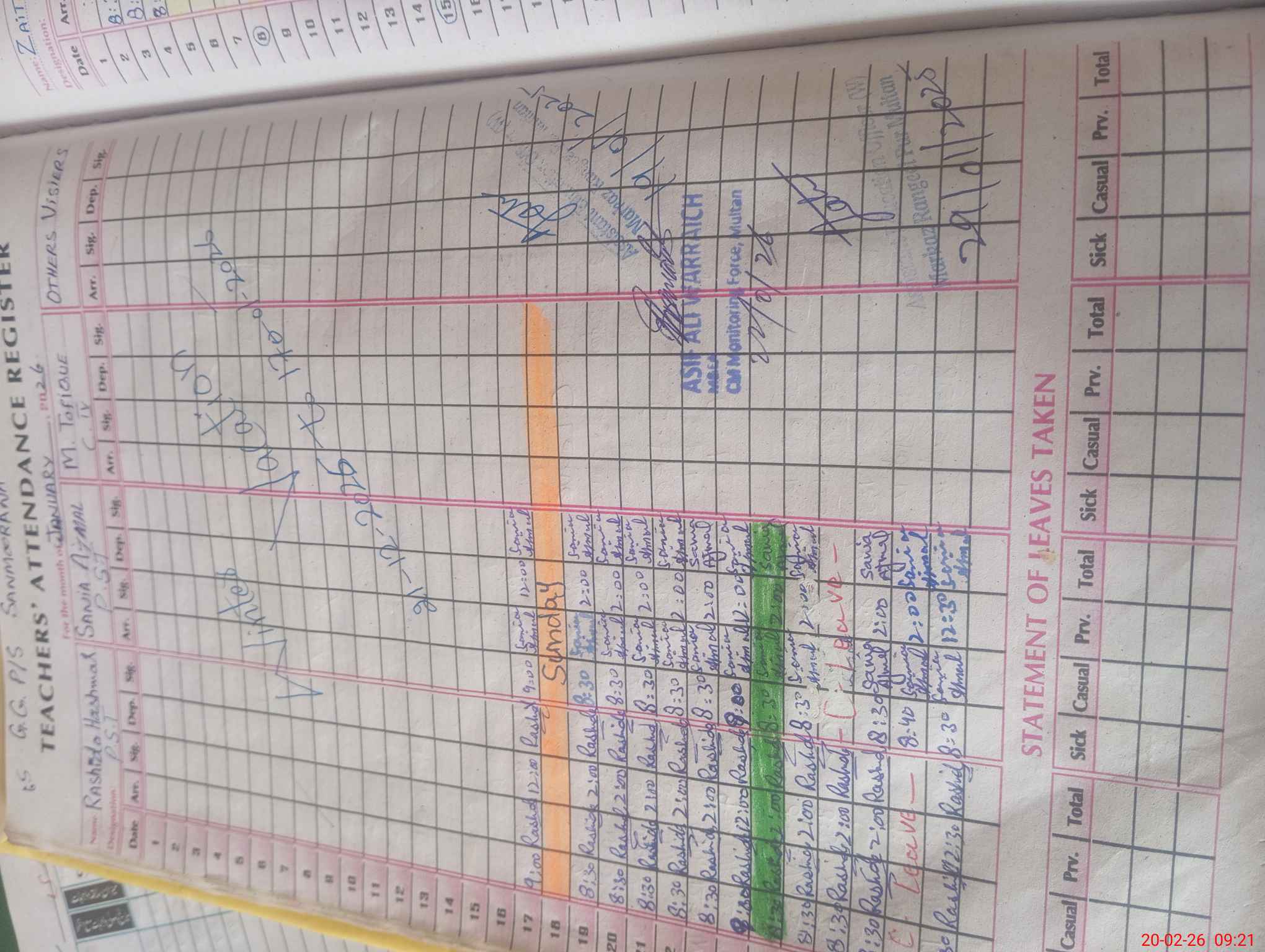 | CNIC | Full Name | Designation | R/C | Absence During Last Calender Month |