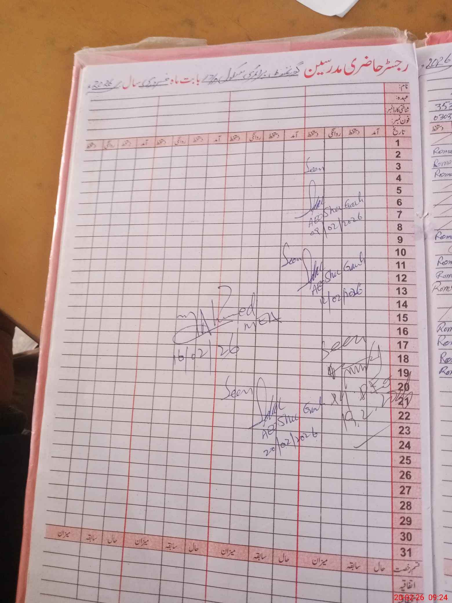 | CNIC | Full Name | Designation | R/C | Absence During Last Calender Month |