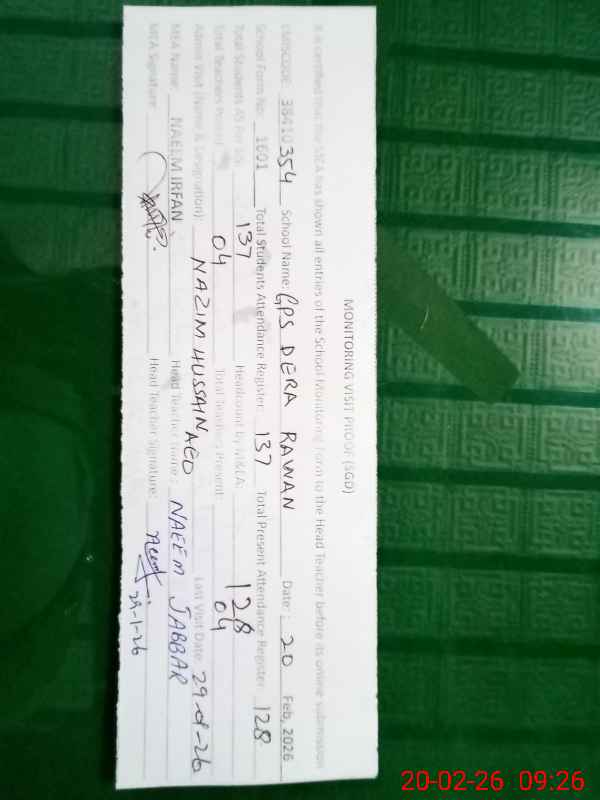 | EMIS Code: 38410354 | Name of School: GPS DERA RAWAN | |||