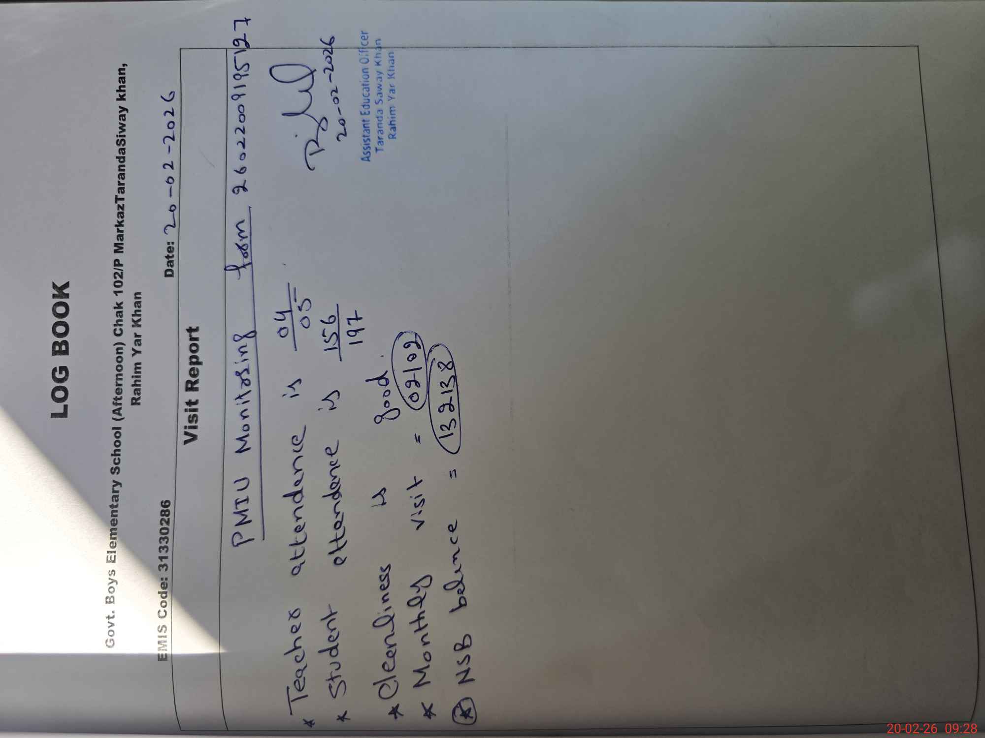 | Monitoring Date: 20-02-2026 | Start Time: 20-02-2026 08:58 AM | End Time: 20-02-2026 09:29 AM | Name of MEA: Mu**** Bi**** Bi**** Id**** | |