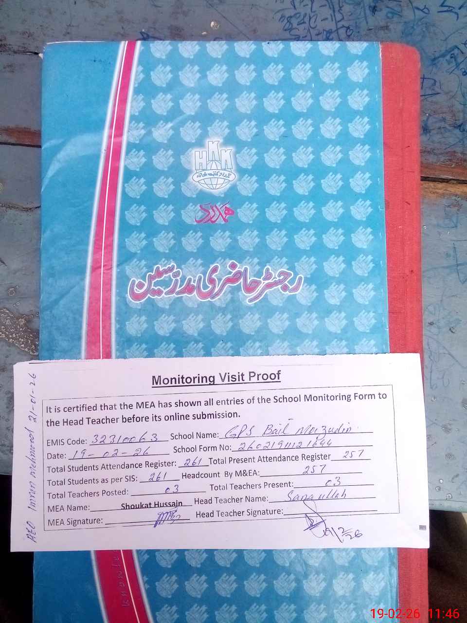 | EMIS Code: 32310063 | Name of School: GPS BAIT MOIZ UD DIN | |||