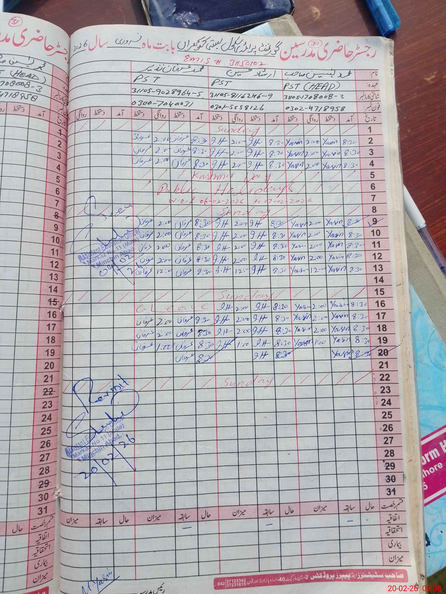| EMIS Code: 31150102 | Name of School: GPS BASTI KHOKHRAN | |||
