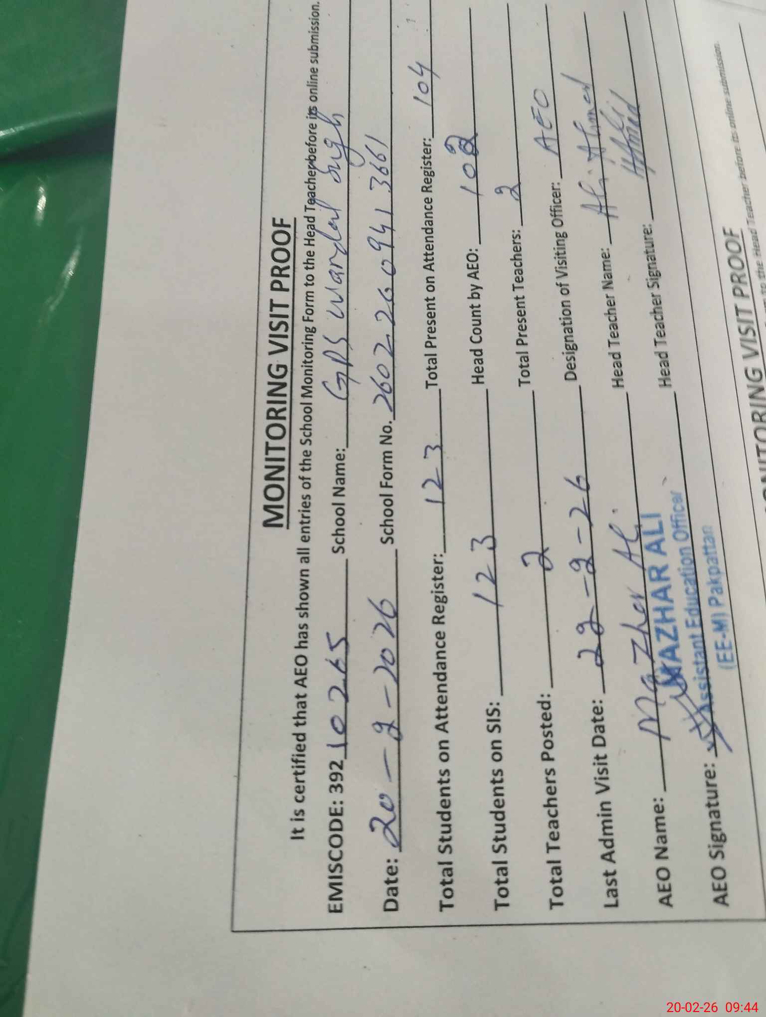 | EMIS Code: 39210265 | Name of School: GPS WANDAL SINGH | |||