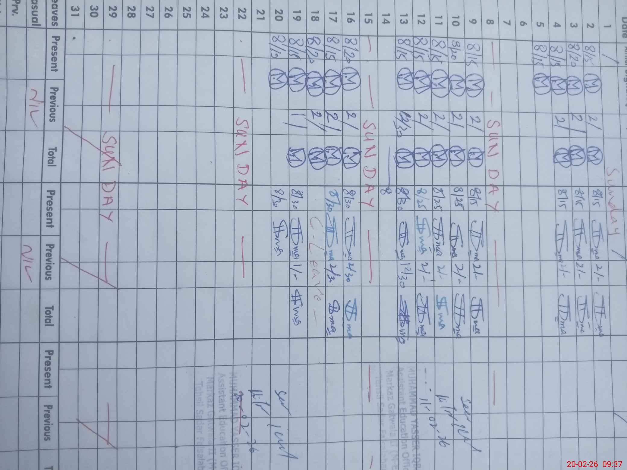 | CNIC | Full Name | Designation | R/C | Absence During Last Calender Month |