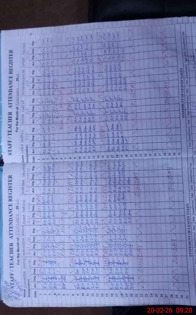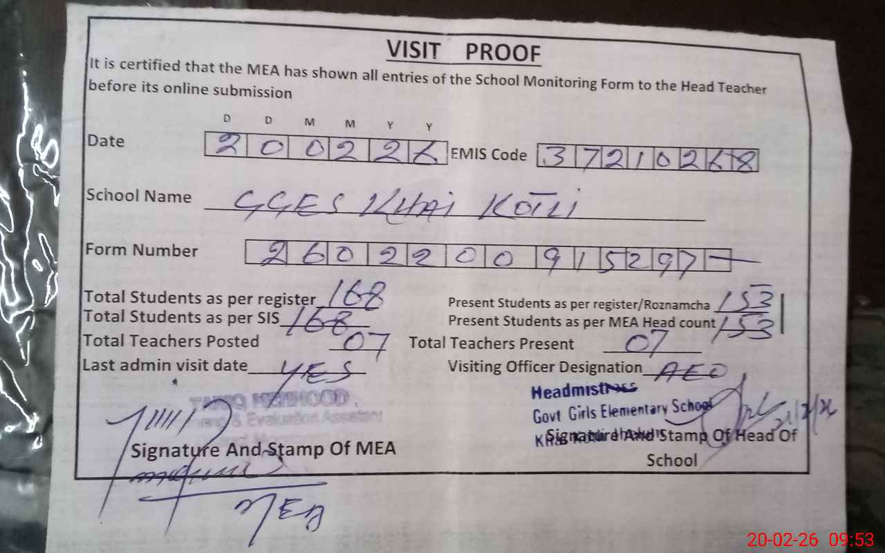 | Attendance Register | Head Teacher | MEA with School | Visit Proof |