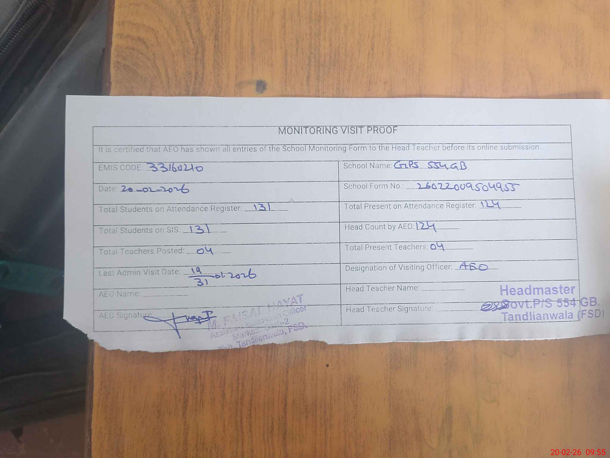 | EMIS Code: 33160210 | Name of School: GPS CHAK 554 GB TANDLIANWALA | |||