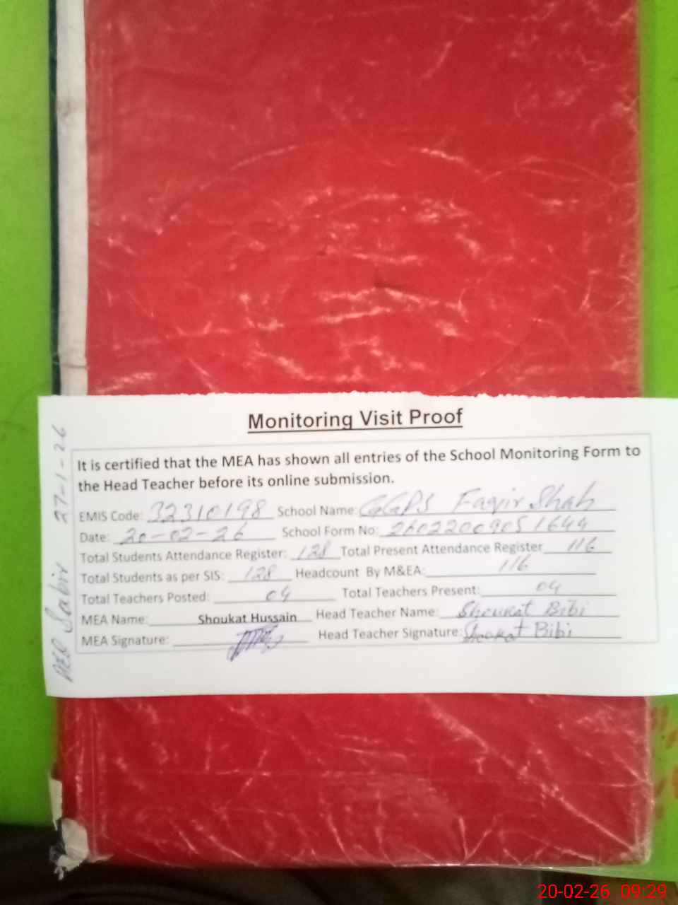 | EMIS Code: 32310198 | Name of School: GGPS FAQIR SHAH | |||