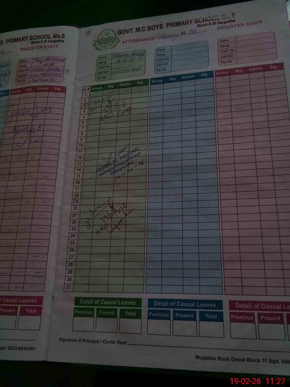 | CNIC | Full Name | Designation | R/C | Absence During Last Calender Month |