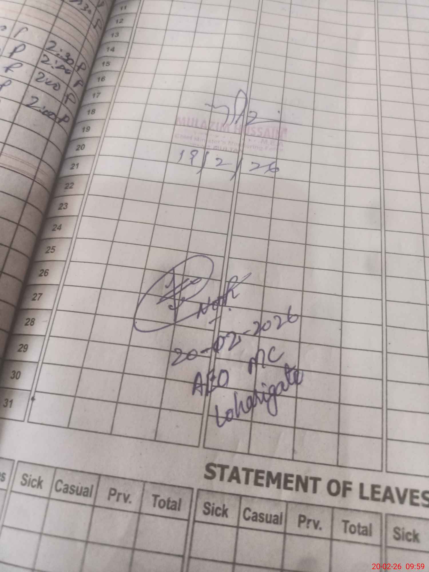 | Monitoring Date: 20-02-2026 | Start Time: 20-02-2026 09:07 AM | End Time: 20-02-2026 10:00 AM | Name of MEA: Ma**** Kh**** Pa**** | |