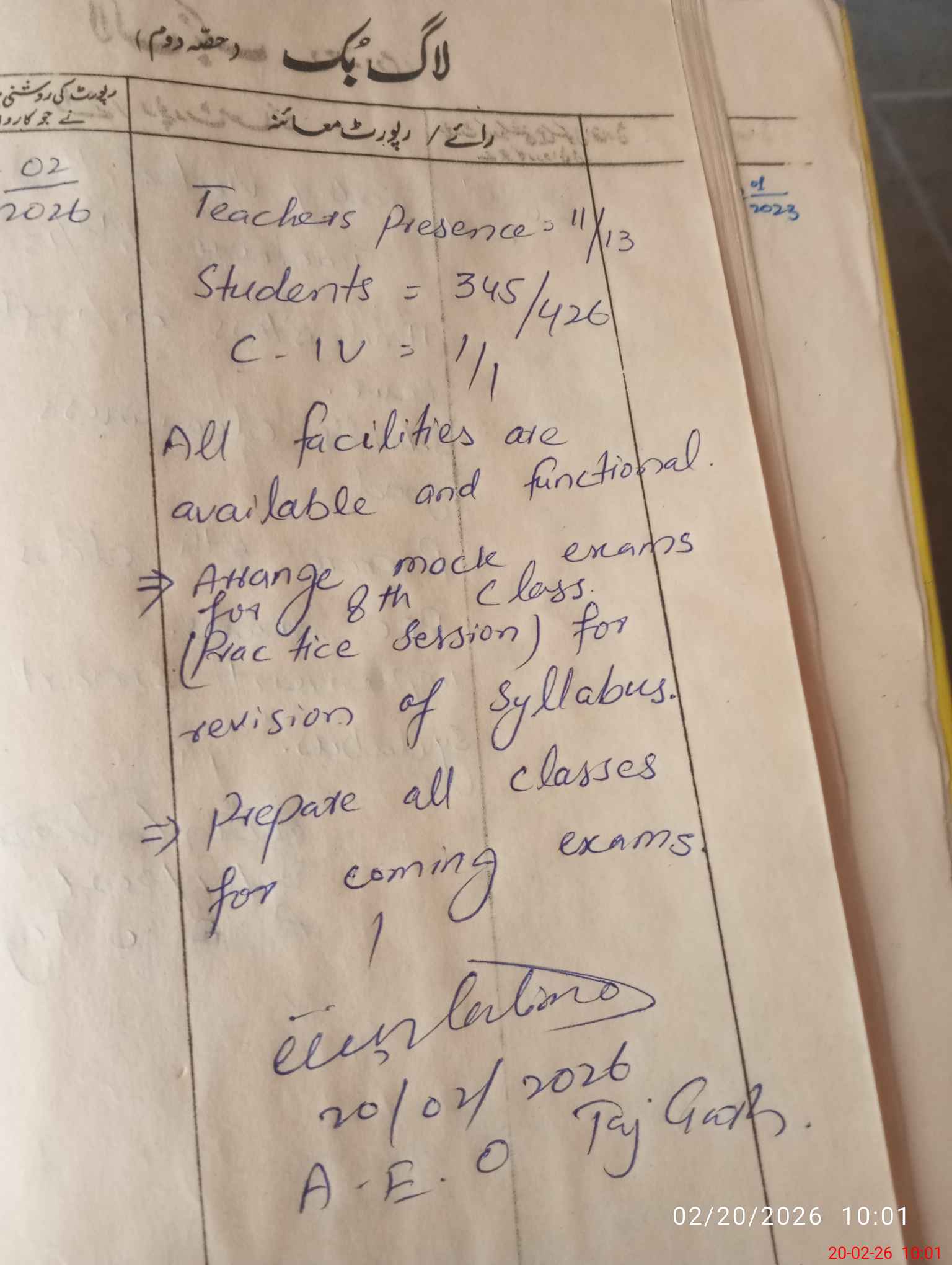 | Certified that this School was Inspected by the Undersigned MEA/DMO Today and the Information Stated Above is as Per Record. | |||||