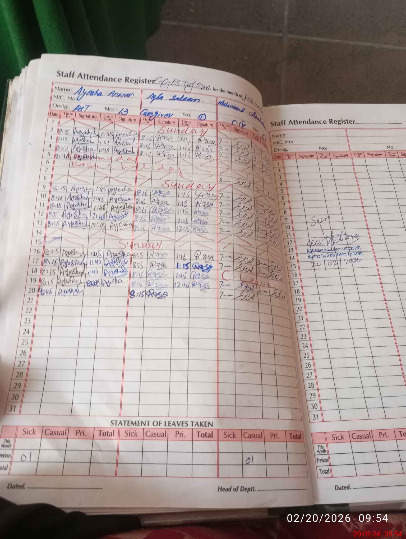 | Leave | Duty | Absent | Maternity | Medical | Ex- Pak |