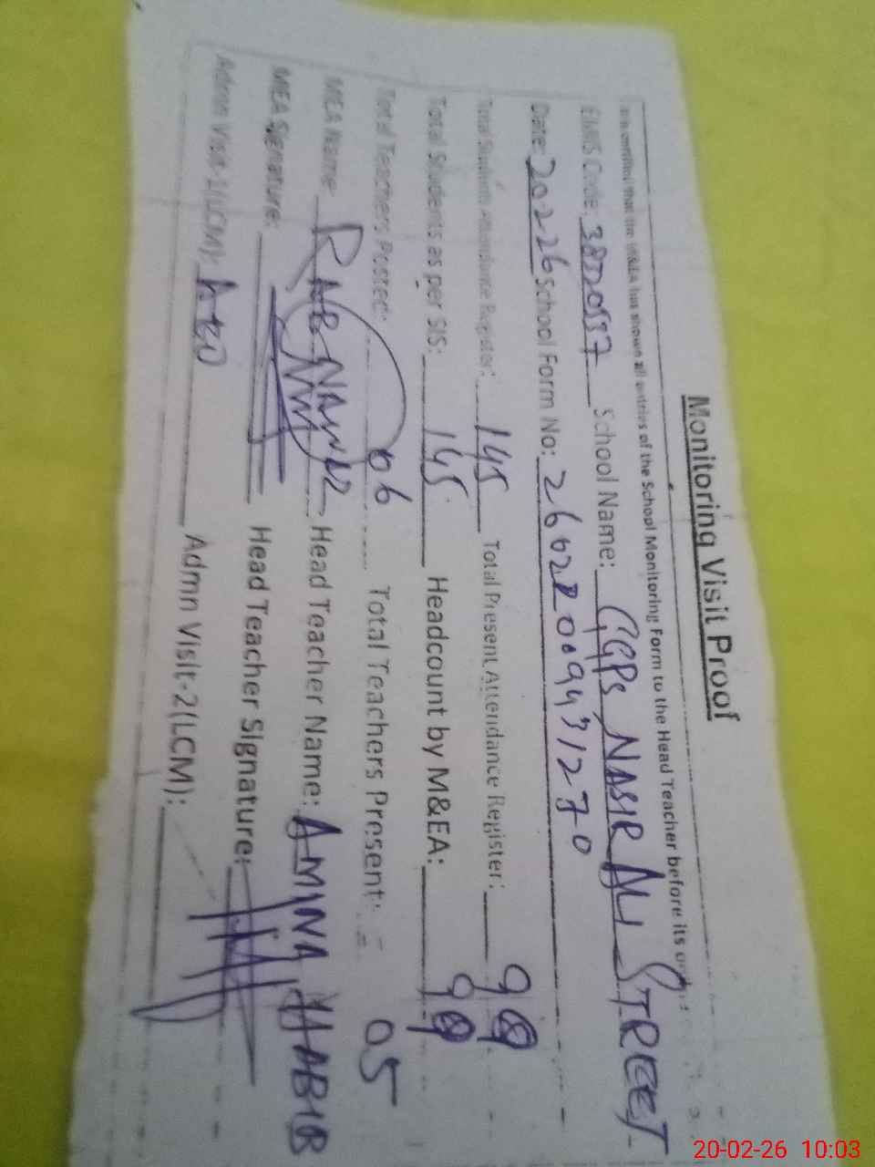 | EMIS Code: 38320537 | Name of School: GGPS MC NASIR ALI STREET | |||