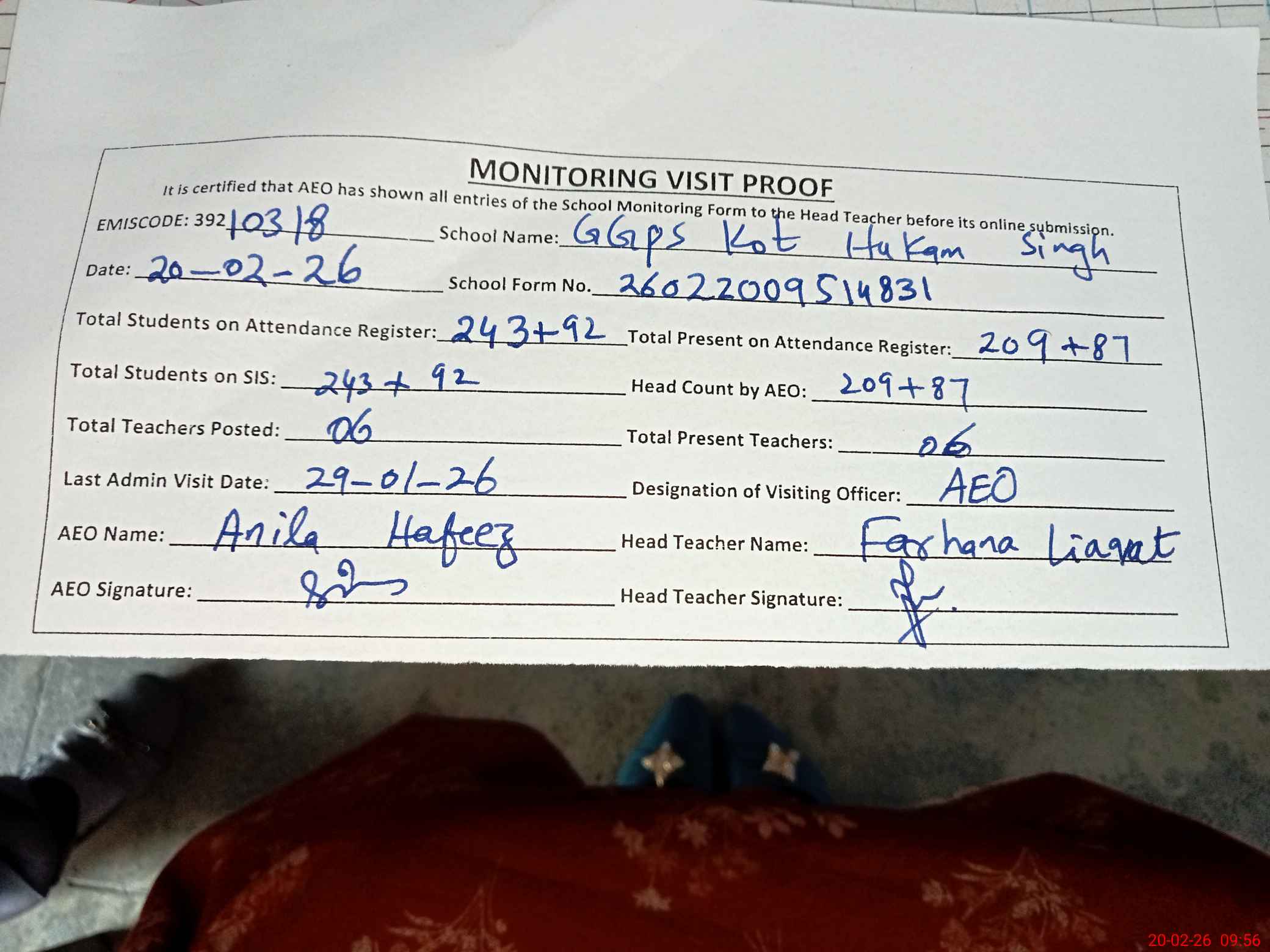 | EMIS Code: 39210318 | Name of School: GGPS KOT HUKAM SINGH | |||