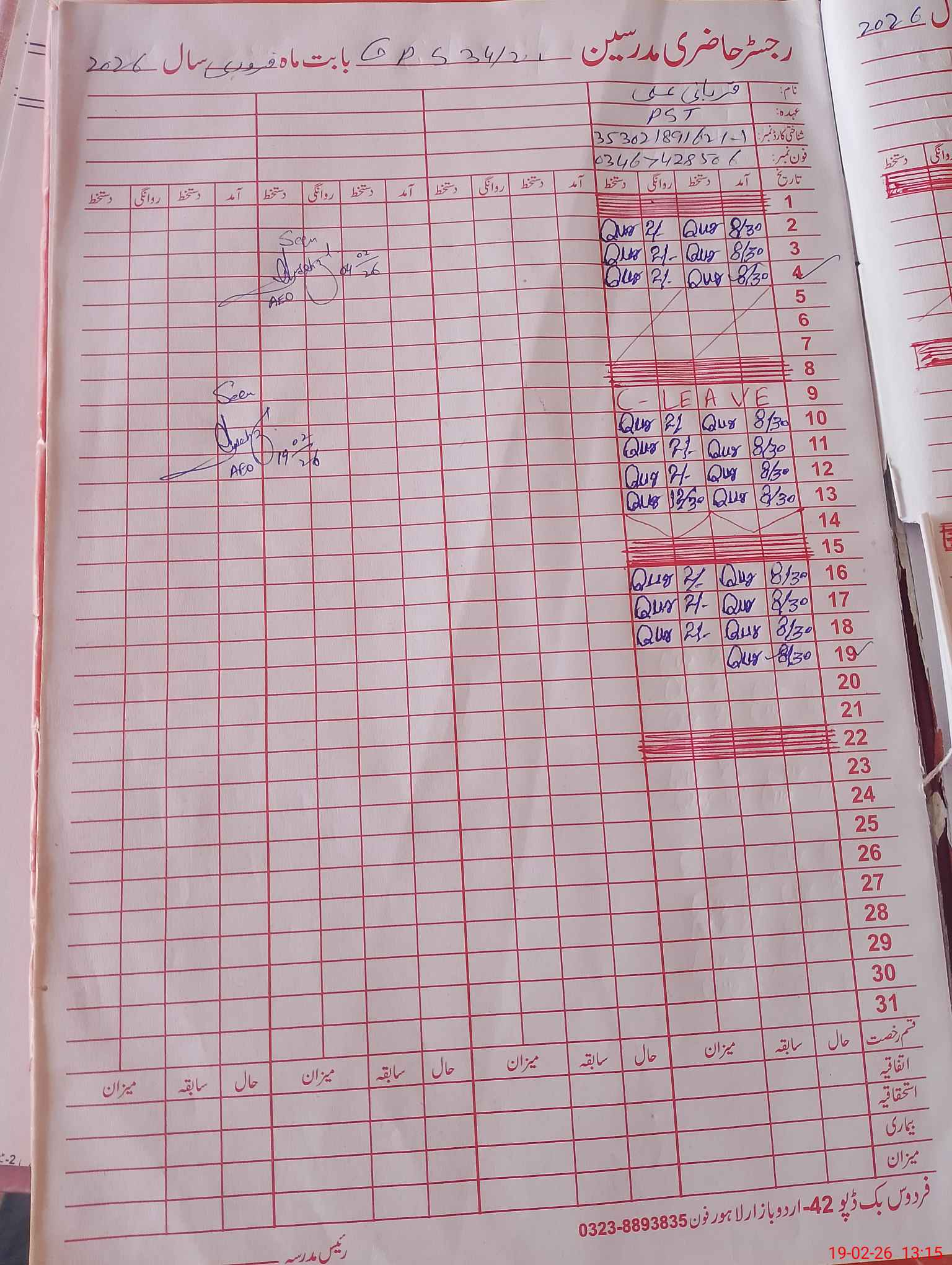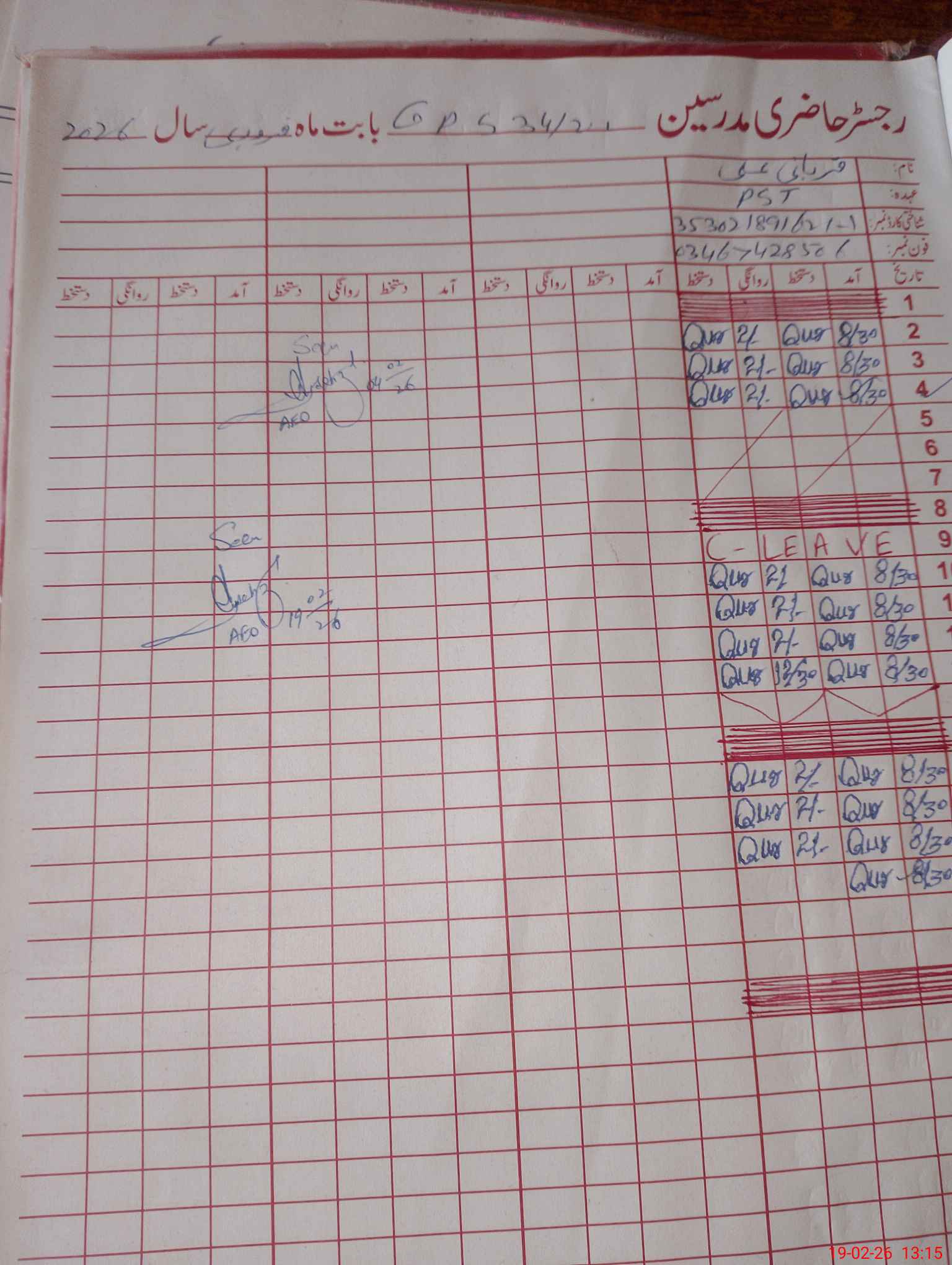 | Name: Aw**** Qa**** Designation: (School Headmaster's/Headmistress's) PST Phone/Cell Number: 03**** |