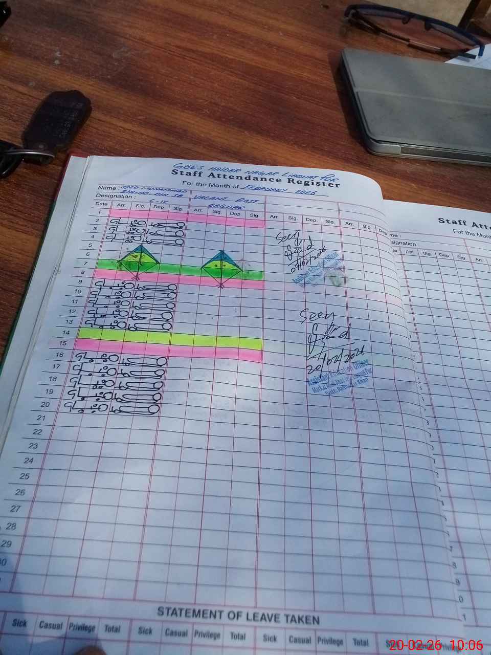 | CNIC | Full Name | Designation | R/C | Absence During Last Calender Month |